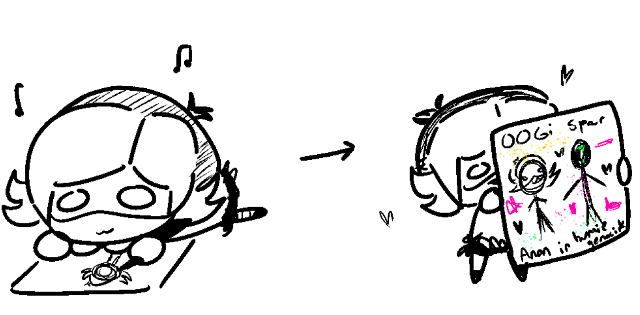 >>332507 I feel like U-U's valentine would be a mess because they can't agree on what to write or how lovey-dovey to be so it'd be covered in scribbled out and rewritten text and be partly illegible where one of the two tried to eat it after getting too embarrassed