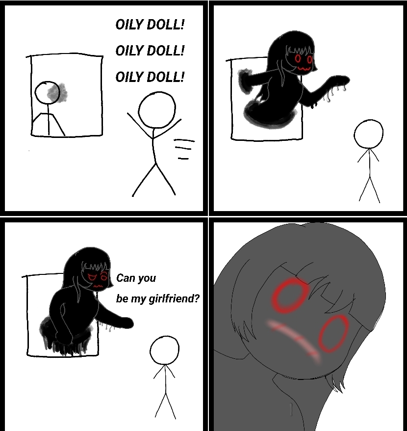 Alternatively: Uzi designed a Sludgestation for her: >Doll laughs uproariously from the inside of her fishbowl, delighting in her expert annihalation of game night >Then she feels the bowl rising >Rising till she's stares into the optics of all three of the oil drinkers she just pissed off >She could simply ghost away mind you >But then she'd never get internet access again >So she makes the hard choice >Getting "shaken not stirred" is just temporary anyways