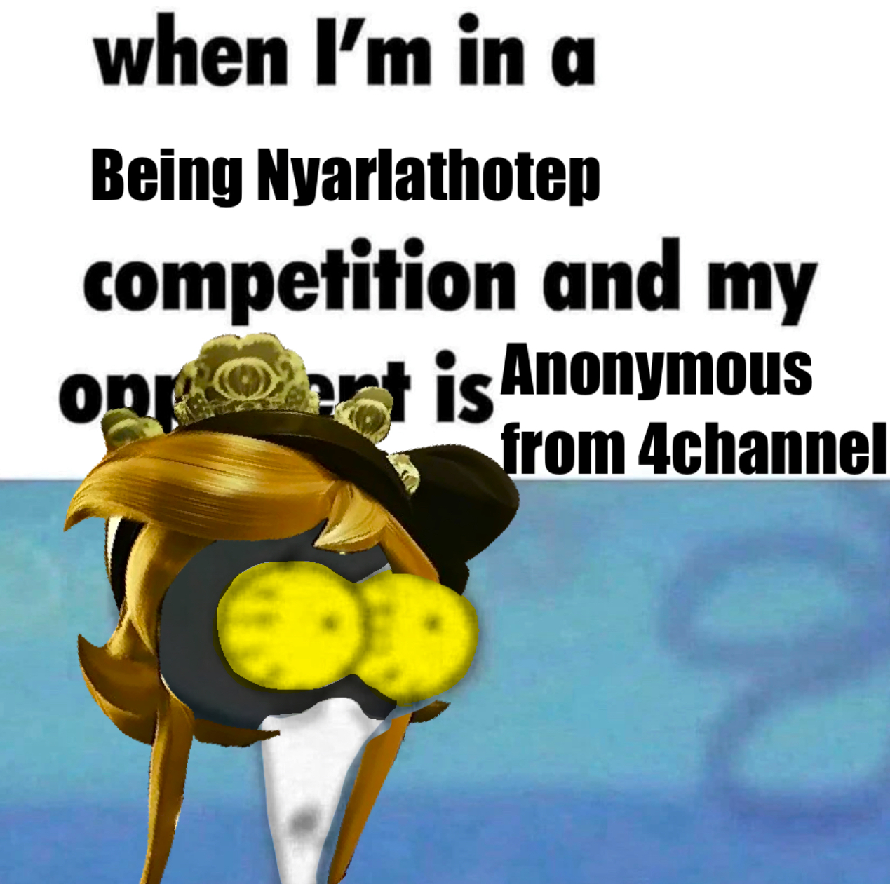 >>332568 >POV: his mortal bearing falls away, eyes unmade, skin growing green, smile wide >green letters swirl, the air tastes like clovers, something terrible is about to happen. >he utters two words like a spell >be me