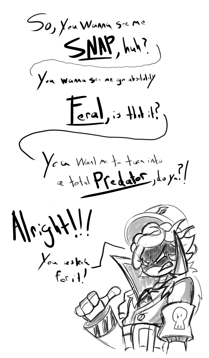Went insane trying to find a merc image I wasn’t sure was on the booru. Its funny we go out of our to try and find images when we could simply ask merc next time he pops up to put all his drawings in a zipfolder and catbox them.