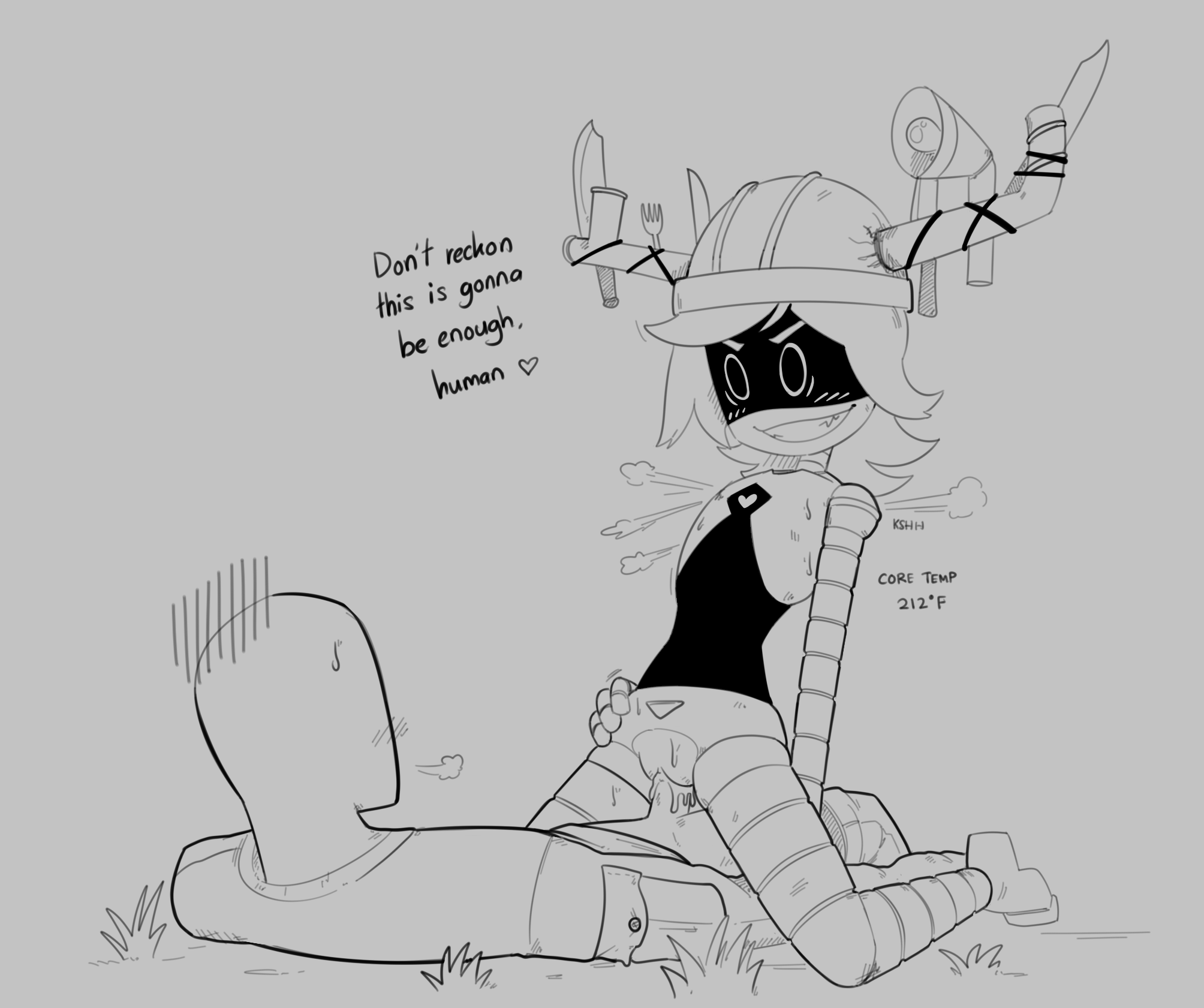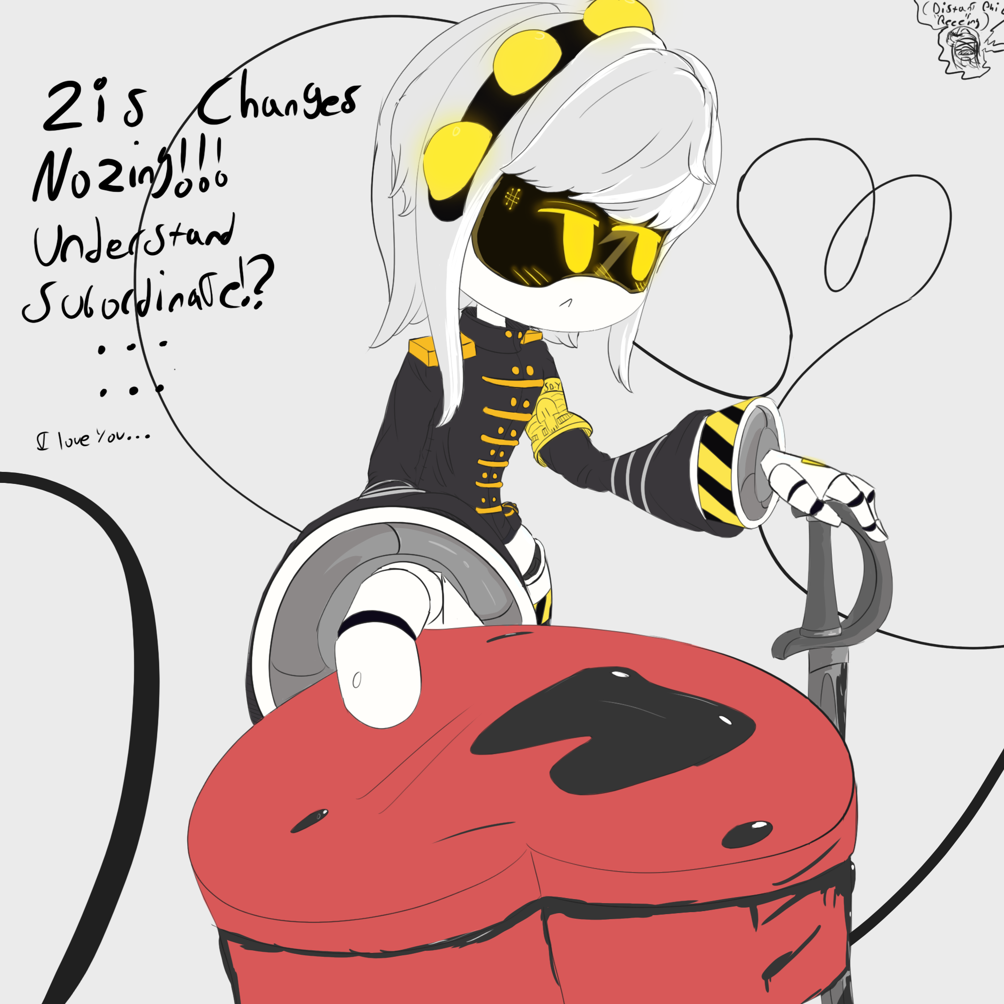 >Be me Anon, works for JCJenson. >Work in the Disassembly Drone division for maintenance and technician work, the usual blue collar job. >One day in particular, I spot my boss and head of secretary, Serial Designation J. >She never talks to me, I don't even think she even knows my first name. >She's just walking around checking how the work is doing for a bit, but I noticed she looks a little... Different. >I couldn't put my finger on it until I look at her legs and realize she has a new pair of garterbelts going down the sides of her robo legs. >I was probably in a very good mood or something that day because I decided to compliment J's new garterbelt stockings. >"Oh hi there, nice stockings btw boss" >She just freezes and slowly looks towards me, has a mixed look of what I could only describe as shock and disgust on her visor/mouth. >She doesn't say anything, only speedwalks away while staring daggers at me. ... >The next morning HR held a mandatory (Sexual Harassment, Catcalling, and Rape on the Job Site) meeting panel. >J was the primary host of this meeting, entire time was talking about a "unnamed certain individual" who supposedly said some "traumatizing and disgusting" things to her. >She didn't say so but J made it VERY clear exactly who this person was...