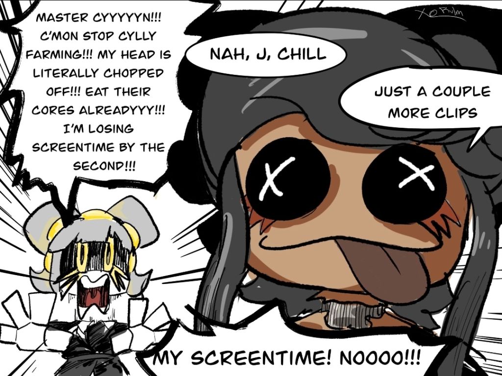 >"Empress" Uzi every so often asks Doll to leave her head and stow away on a ship bound for the Trappist system, to spy on the humans so she knows how to bluff them next time she comes >Doll, being beyond frustrated by Uzi's by this point decadeslong public chuuni routine coping mechanism, is fine with this, because it gets her out there, undetectably walking among humans, seeing things she'd never see back home >Plus, she eats very well on these assignments: spilled blood, medical waste, corpses that still have blood in them... unused and unusable blood that no one would notice missing in general, much appreciated change of pace from oil