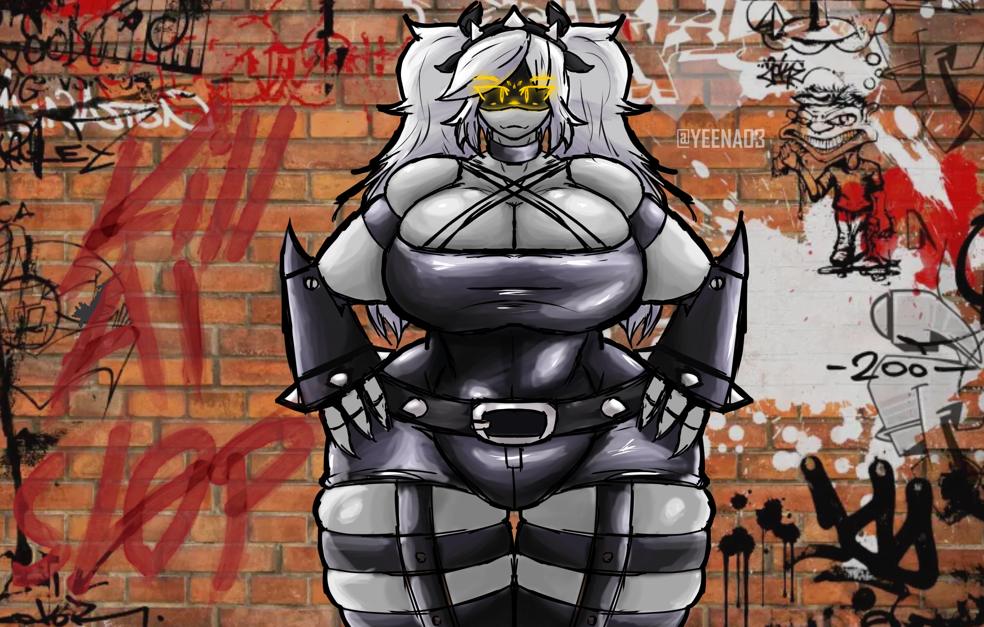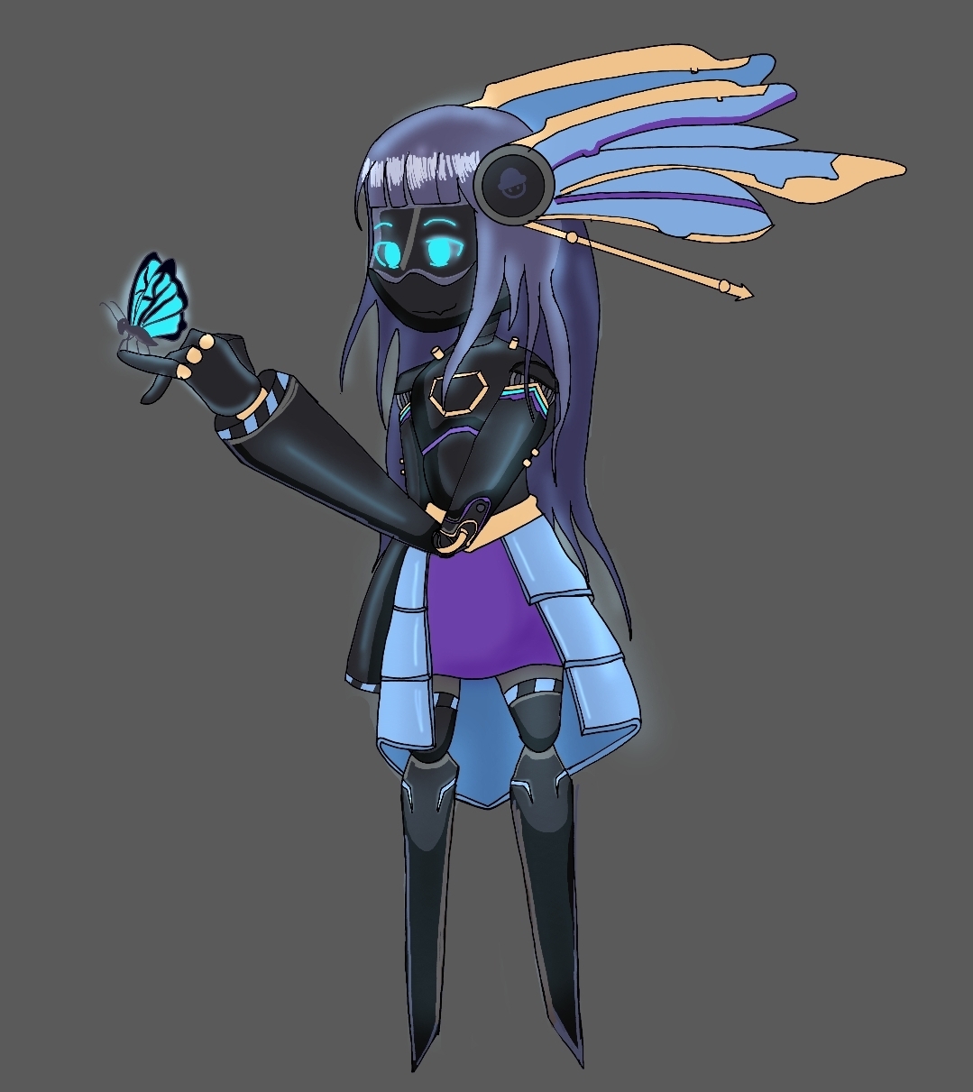 >Before I could inquire further, a soft whir emanated from her frame, and a faint mist dispersed into the air is sniffed strange spores. >The particles danced around her, reshaping her drone silhouette in a shimmer of illusion. >When the haze cleared, there stood a semblance of a human girl, though imperfect in its mimicry: her skin a pale white, like moonlit porcelain untouched by warmth; her eyes a dull yellow, devoid of life's sparkle, staring at me with an eerie vacancy; her hair a tangled mess of pink and green.