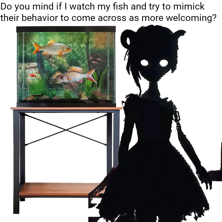 >>33850 >"Thank you for everything, AN0N," mistress Cynthia says >Wait, that's not right >That's not her tone of voice >"Polite bow," the impostor says >It does not bow