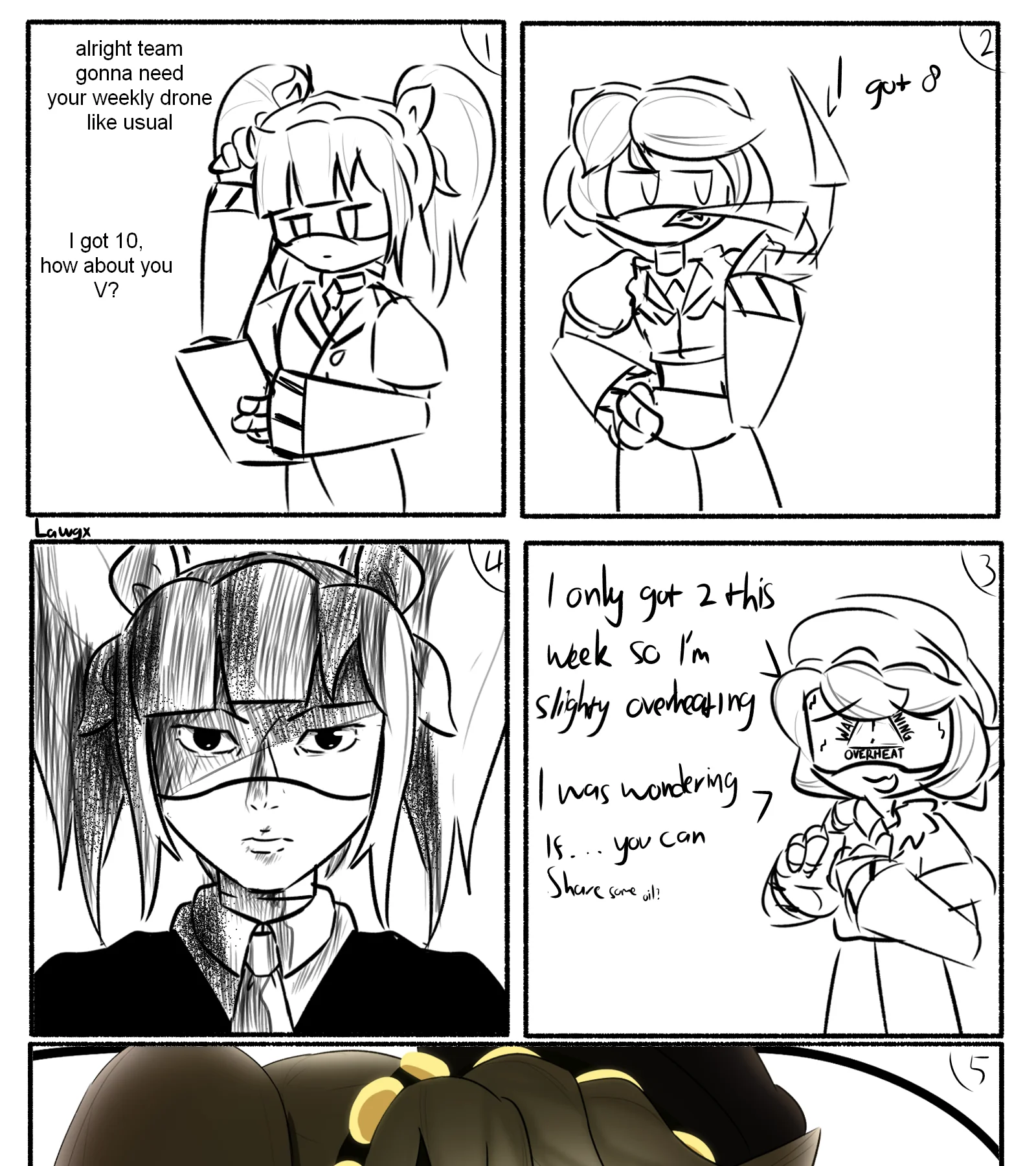 >Fast forward to the start of Beretta's "Troubled Teenager" arc >Because Beretta's relationship with her parents is starting to strain the teenage drone is resorting to increasingly delinquent behavior (getting into trouble, running away from home, ect) >Coincidentally (at least as far as Beretta is concerned) V is more often than not the one to bust/catch/fetch Beretta & bring her back home >Over time this causes them to start forming an actual bond, slowly but surely softening V's cold and paranoid attitude towards Beretta >It's at around this point that Beretta's Solver Stuff starts to develop...
