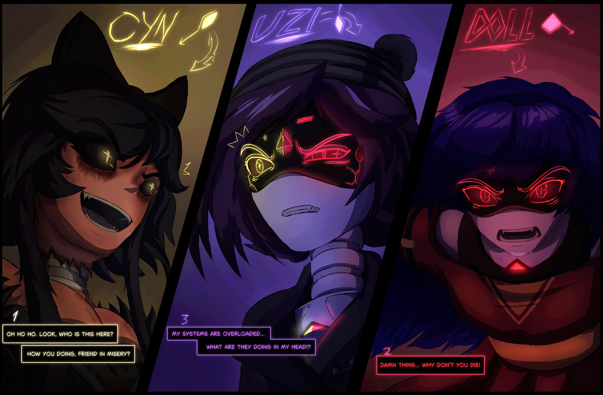 For context I'll start from the beginning to rehash some important stuff and then speedrun the rest of the story beats from there >After becoming resigned to a childless future (Solver Shenanigans made making a baby the "normal" way impossible") Uzi ends up with a Solver-induced pregnancy >Despite all the uncertainty involved with such a novel situation Uzi eventually decides she's gonna let things play out rather than terminate the Eldritch"child" >V is very much against the idea, arguing that it's both an obvious ploy for The Solver to return from 'defeat' & above all else an INCREDIBLY reckless decision on Uzi's part >Uzi & V get in a particularly nasty fight over this, ending with V swearing to kill the "child" if/when things eventually go bad & ruining the two's otherwise friendly(ish) Post-Canon relationship >Beretta is born, "Auntie Cyn" starts to take form, ect ect