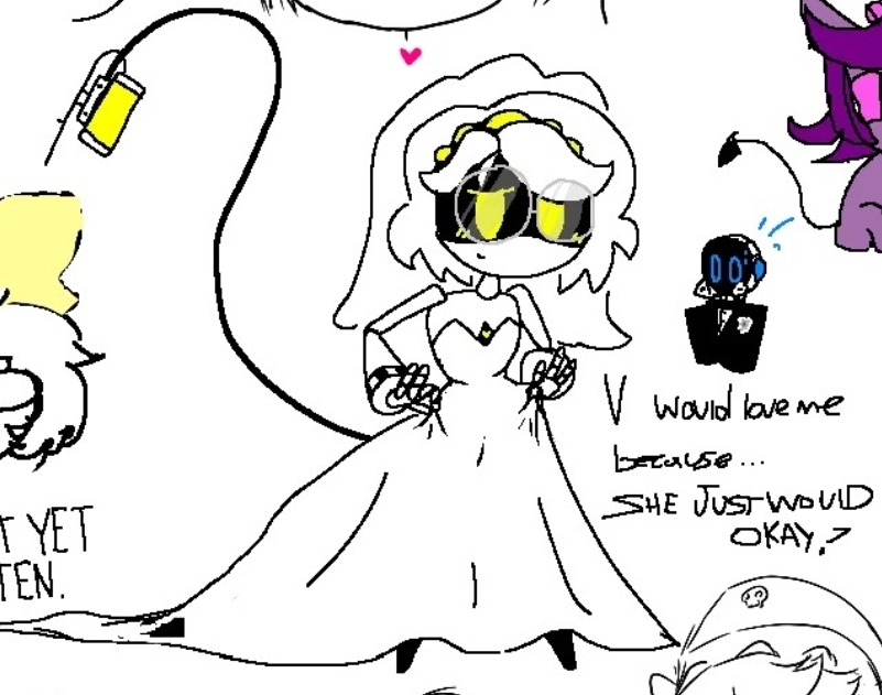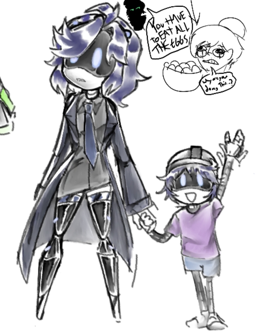 A quick Eye green >It was another day on copper 9. Winds calm,sunlight glistening,bunker filled with life as any other day. >As at small run down building lays Eyes little makeshift home >Often than not Eye usually spent alone. But a few months prior he discovered something he seen before >"Otherwordly" is the best he can describe them. And who is this person?:GOD >Well more promptly a replacement god to be exact since when first encountering them and talking to them, it seems theyre still new to the whole god stuff >Especially when Eye rambeled on the whole mythos of different god patheons,what each god does,and many more >Before defaulting to the whole "omnipresent" god type as they describe themselves as >And Eye felt guilty of not sheltering the poor thing, especially when they describe where they live too:run down, damping cold place that feels like an empty void...the same way how Eye use to live before until meeting with Lizzy >And just like Lizzy, Eye decied to take GOD underneath his wing and let them stay at his place >And ever since thay fateful day Eye couldnt help feel that every day became a bit better than the last. Those horrid nightmares he once have appear less and less,he become more talkative, meeting new people, feel more confident of his choices...everything felt...a bit better >And sure there are days where I can get pretty chaotic, especially with Holly and Alpha coming into the picture. But it the good kind of chaos that anyone could enjoy >And Eye reflected upon this encounter he noticed that his little GOD fast asleep. She always knows how to tucker herself out >Thus he switch which what he likes to call his "cuddle mode". Instead that long egregious name that basically mean electrical blanket mode >As he cuddle in closer, putting her head onto his chest. His systems slowing themselves down,as he visor began slowly fading a thought pop into his head before he went to sleep >"I wonder if holly would like the idea of us moving in with her...yeah I think they both will like....it...." >[SYSTEMS SWITCHING TO "CUDDLE MODE"] >[ESTIMATED TIME 30 MINUTES BEFORE TURNING BACK TO NORMAL MODE] The End