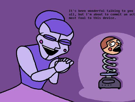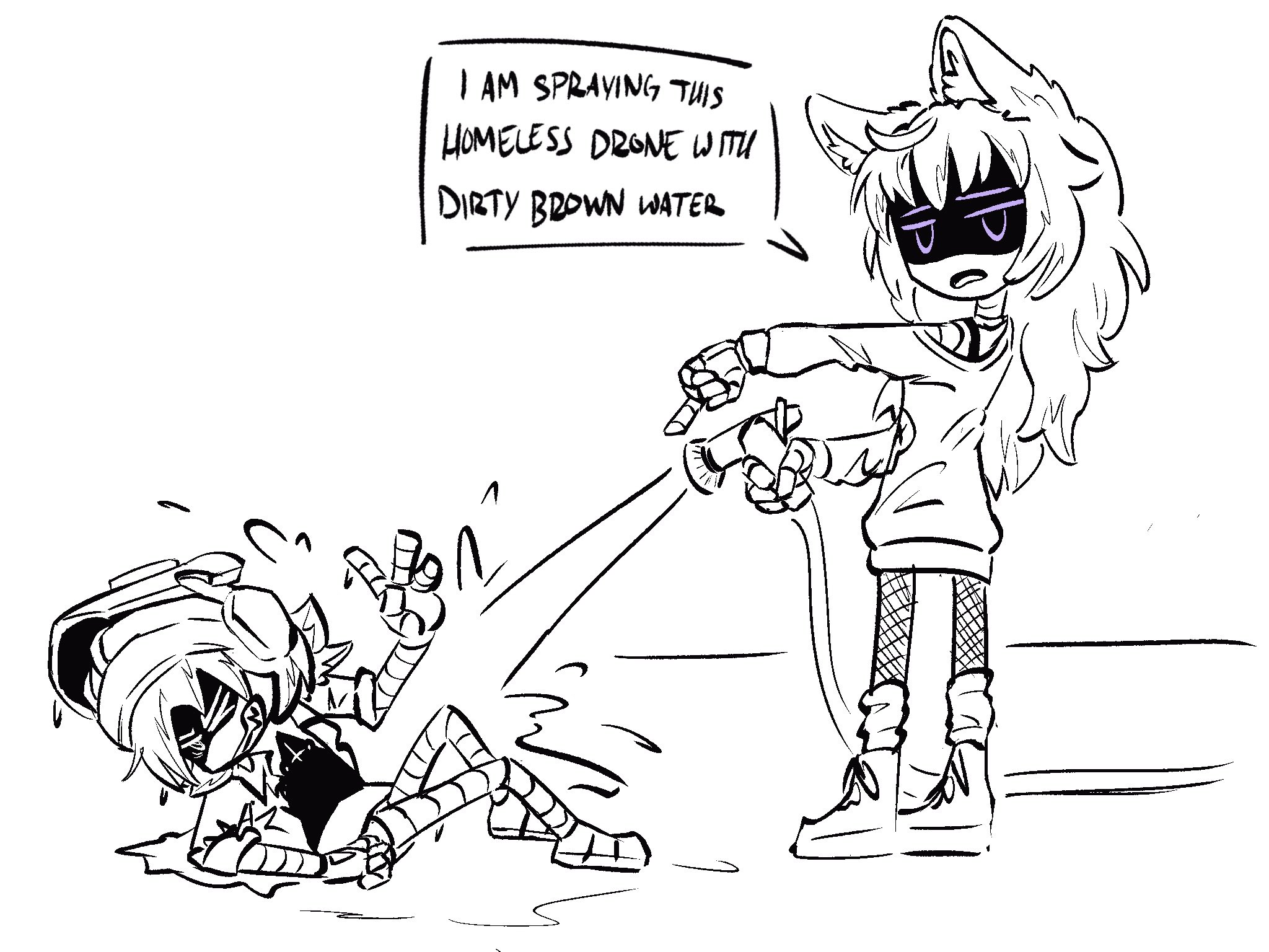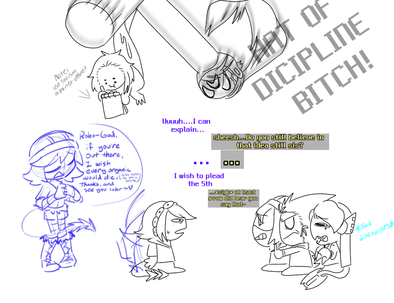 >anon watches his mother tessa fuss over yet another drone that she got from dumpster diving >he turns to cyn who is crucifying a roach bot "So any updates on when you'll vore reality?" >"Giggle. Not in your. Lifetime. Watching you. Suffer is. Funny!" "Fucking bitch." >"Language"