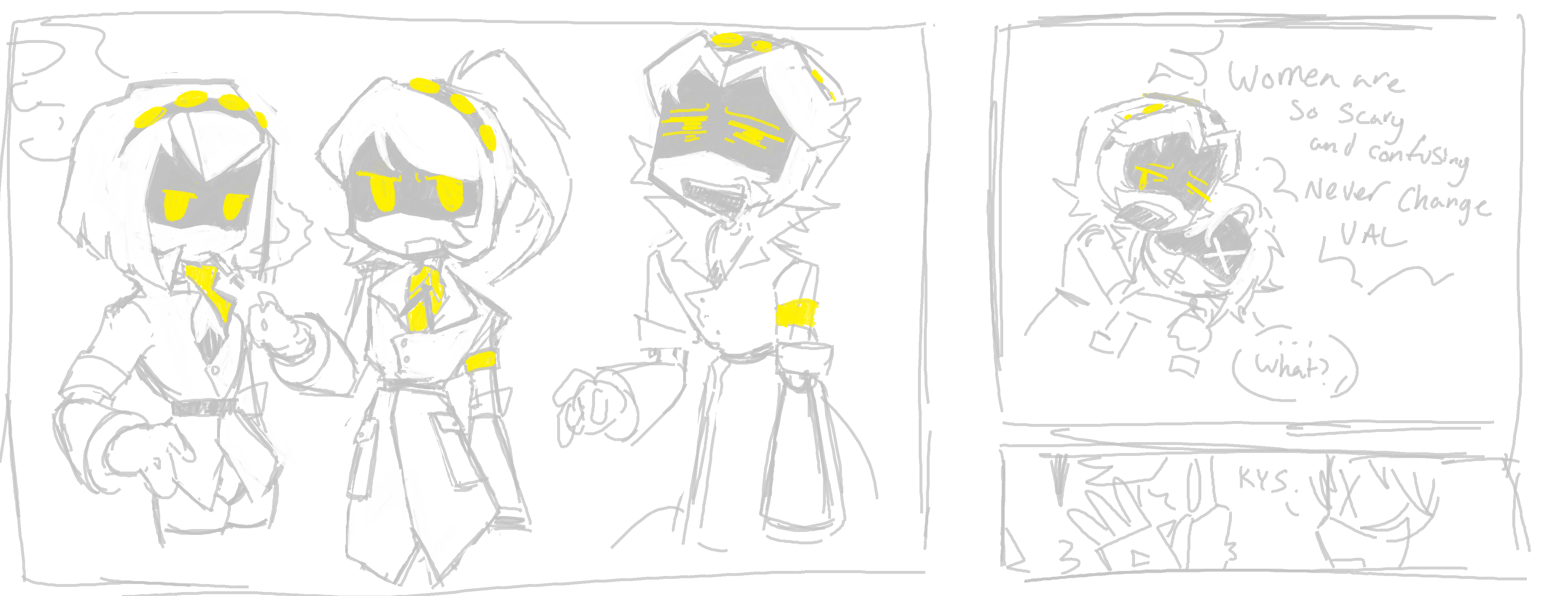 A male Negev would be a nuclear bomb for the tumblr crowd. You got a messy haired robo twink with a sharp toothed smile and wears a straitjacket and talks to ghosts of other robo twinks?