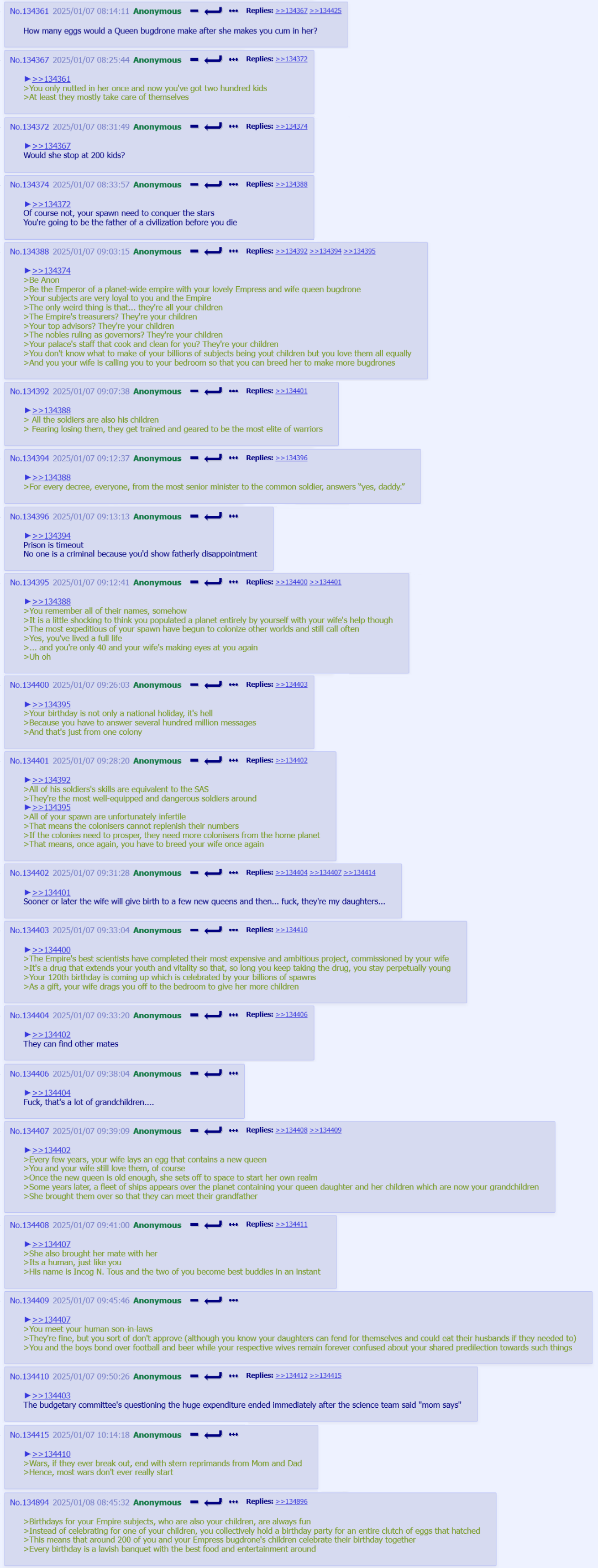 >>346072 Would (you) rather govern a bugdrone civilization of your children or a WD civ that sees you as a god? Keep in mind yours isn't the only one: an army where each soldier is kith and kindred feels losses a lot more keenly than one of mass-produced retards.