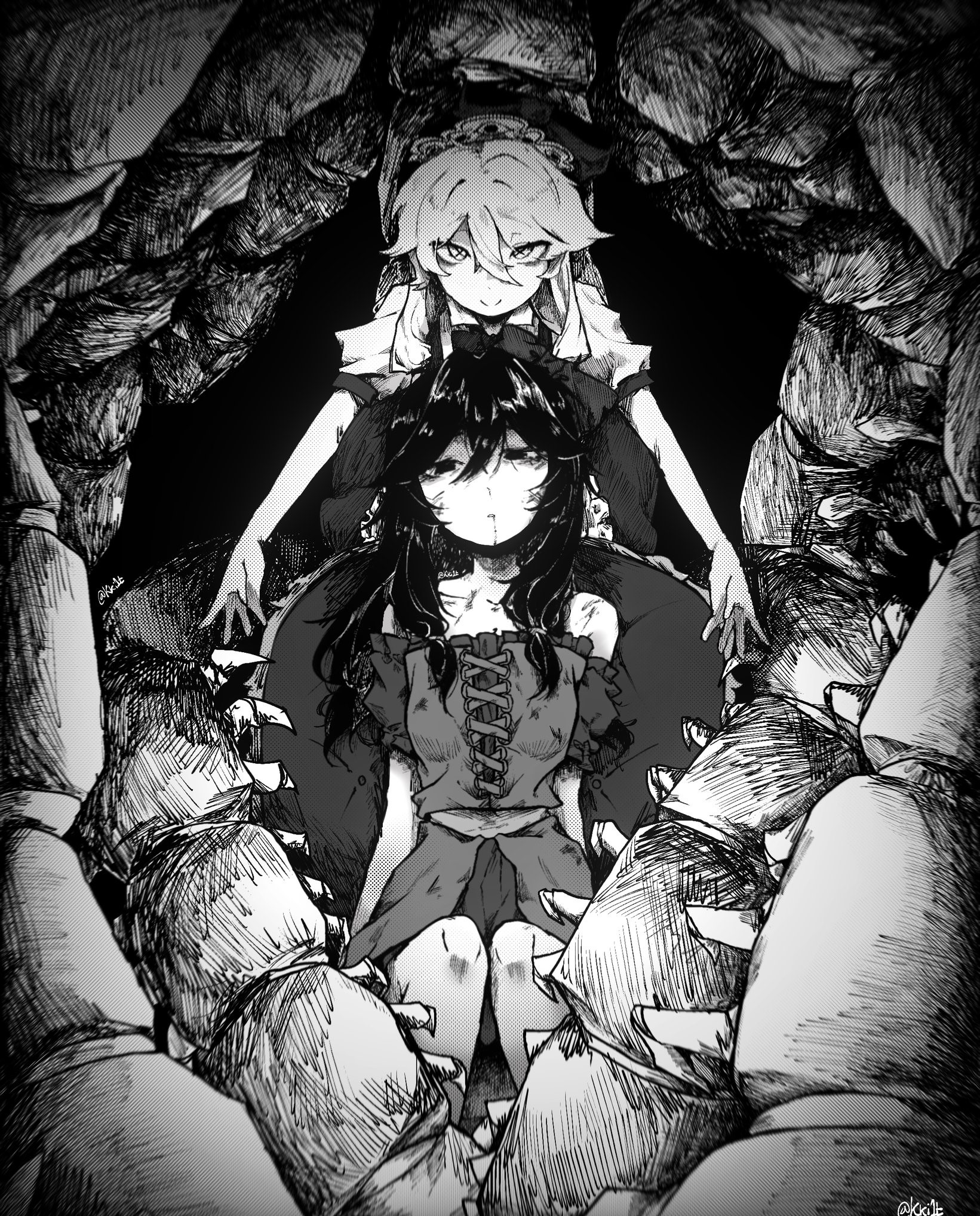 >>347111 ive been meaning to draw a "bad end" version of asenath where she's died and died and died again so many times that she's basically completely necrotic and eats people in their sleep in a vain attempt at regaining cohesion. effectively making her a bogeyman type cryptid. unfortunately i am the most disgusting good-for-nothing slacker on earth and havent drawn seriously in a month at minimum. fuck my stupid chud life.