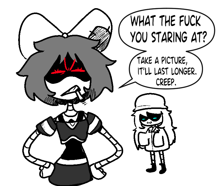 Why the heck does she care? She's been told time and time and TIME again that normies are worthless(with some exceptions) and she should just like her dumb stuff freely like Uzi! That's what worked for her! That's what worked for Nori! That's what worked for friggin DOLL of all people: why can't she just accept my advice?