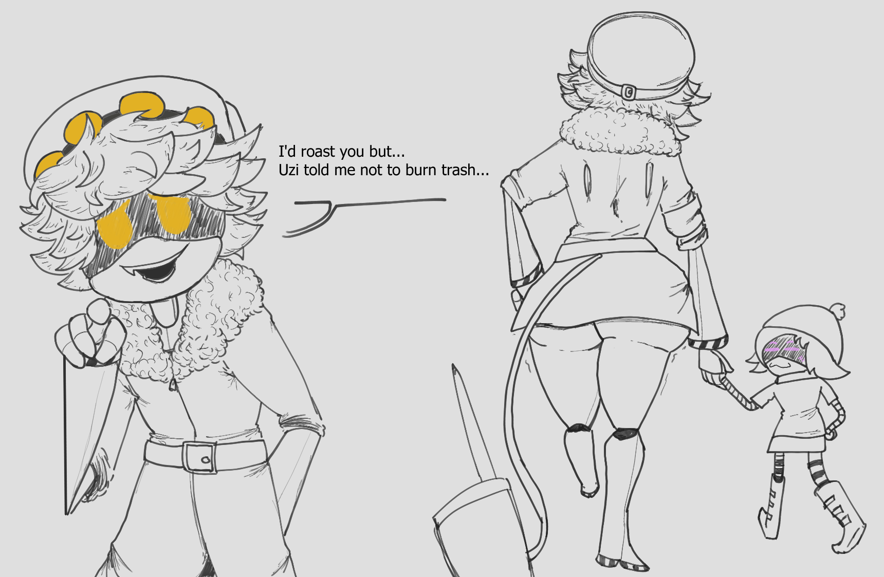 Repostin' K squad drawing from previous thread. I have L's second pass pulled up on my XPpen right now and it's maybe 30% done, then I can move on to writin'