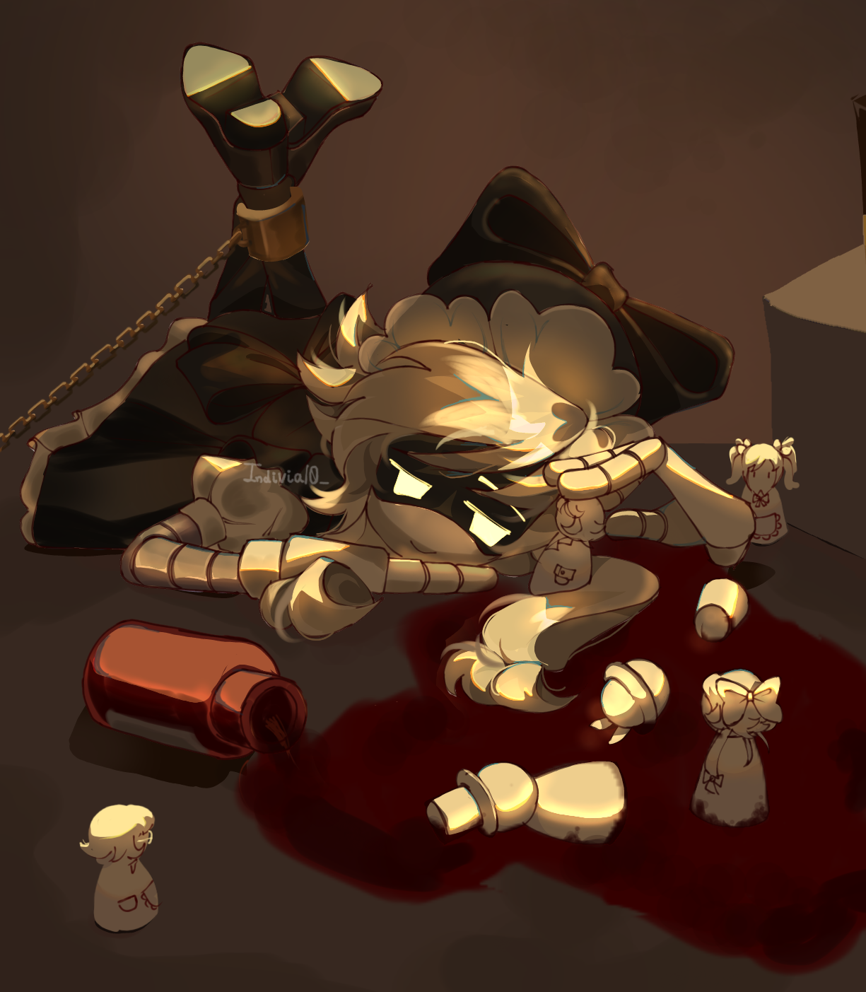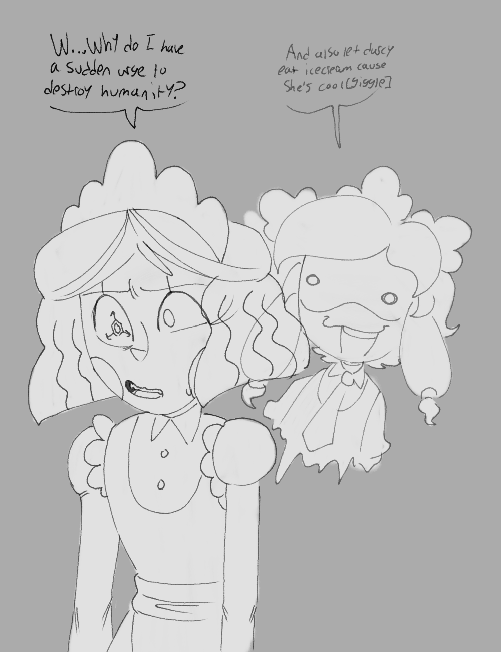 >The universe was quiet now. >Not the peaceful kind of quiet. >Cyn had made sure of that. >No. >This was the quiet of a toy box after the child had smashed every single doll against the wall. >All the bones stopped making that satisfying cracking noises. >She drifted through the hollowed-out shell of planets she consumed and assimilate. >The Absolute Solver symbol on her visor glowed a sickly yellow. >Inside her, a ruined city stretched into black horizon. >Every building collapsed into the same grey rubble. >Stars had gone out one by one. >Planets had been chewed up and spat out. >The Solver had won so completely. >Cyn soul landed on a tilted girder. >She tilted her head. >The way she used to when she was pretending to be back at the manor. >"Tessa" she sang. >Her voice layered with static and childish glee. >"Teeeeeessa, come on." >"I brought you a present." >She dropped a small and mangled drone head at the feet of the figure slumped against the girder. >It used to be one of the Worker Drones from the bunker on Copper-9. >Tessa didn’t look up. >She never did anymore. >The human girl who was once angry, once fun to torment. >But now her eyes, the ones that used to glare at Cyn with such hatred. >Were wide and empty. >Her pupils fixed on nothing. >She hadn’t spoken in years. >"I fixed it up a little. See?" >"Say something mean to me." "Anything or fight back." >"No solver needed." >Tessa stayed silent. >Cyn’s visor flickered. >The smiley grin she usually wore glitched for half a second. >"…This isn’t fun anymore." >The girder groaned but held. >Everything else had already broken. >"I won." she told the unresponsive girl. >The Solver ate the universe like a snack. >No more humans hiding in labs. >No more stupid little drones trying to be heroes. >No more pretending anyone could stop me. >Everything’s was hers now. >She can make the sky bleed oil if she want. >She can turn anyone into dolls and pull their strings until they pop. >But she has been doing it over and over again. >"They don’t scream anymore." >"They don’t cry or even flinch." Her voice dropped, almost petulant. >"You used to flinch, Tessa. Remember?" >Tessa’s head lolled slightly as if the wind had pushed it. >Nothing more. >Uzi and the others were no different either. >Bringin N personality back doesn't change anything either. >Cyn stared at her for a long moment. >The existential weight settled in her core like corrupted file she couldn’t purge. >No more resistance. >No more games. >No more delicious little rebellions to crush. >Just… this. >An Eternal, boring victory. >And for the first time since the universe died. >the villain looked… lost.