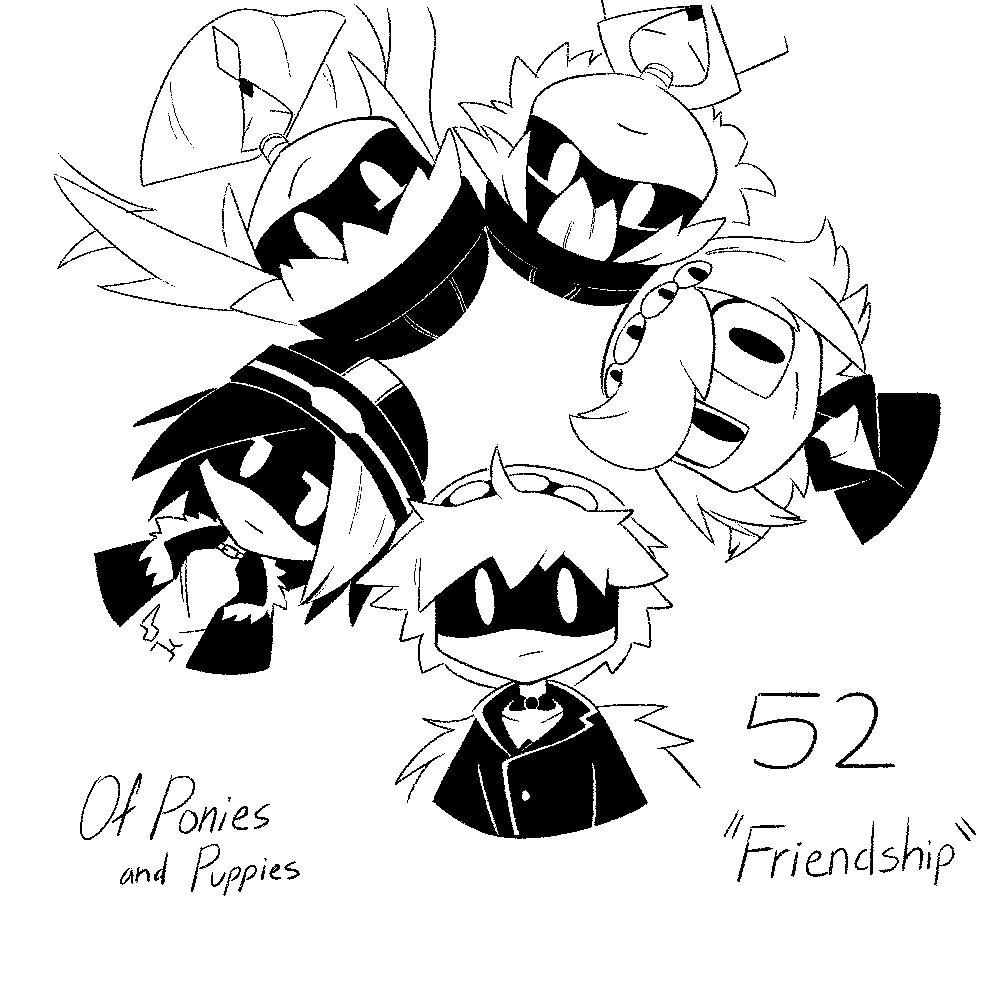 Of Ponies and Puppies - Chapter 52 "Friendship" >As the question of what or who is behind the cameras lingers on their minds, they must first figure out how Alpha fits in. >https://archiveofourown.org/works/50076205/chapters/217406096