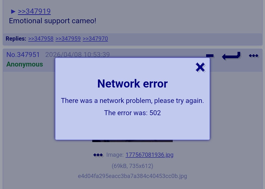 >>348022 >>348018 It wasn't me, and I don't see anything in the logs either. I wonder what it was. A 500 error would at least show up in the logs. Will reboot the server just in case.