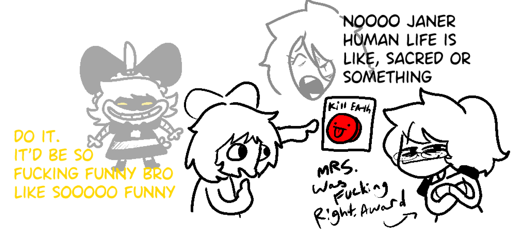 >>347593 I had this greentext OC idea I forgot about that if she were a yandere, she’d be similar to this girl from a webcomic. I'd definitely recommend checking it out.