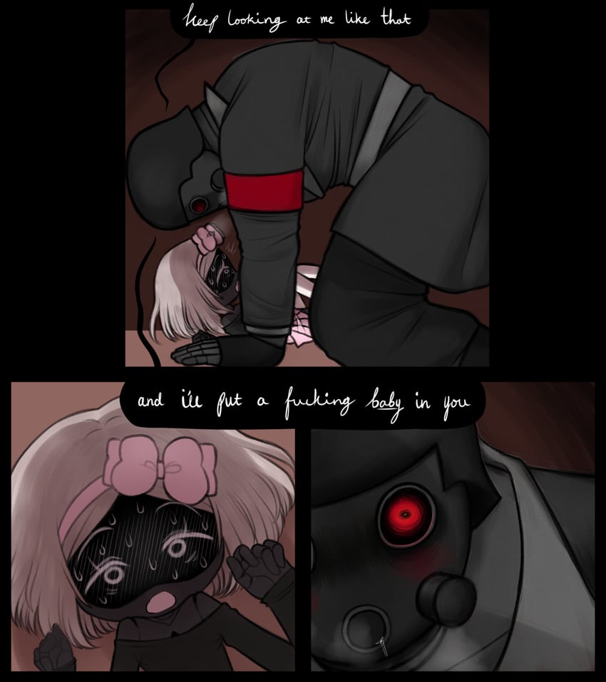 >>347425 >"...Please." she mutters. The juggernaut's eyes shrink into tiny red pupils. He knows exactly what this one word means, it's the go-ahead he's been waiting for. >"If you insist." >Jugg slips his hand under her sweater, feeling the soft, rubbery stomach, before moving up to her sensitive chest. An alert temporarily replaces one of her eyes as Masqy overheats. >She places her hands on his thick forearm, holding onto it for dear life. His touch causes her to grip even tighter. >Her breath hitches. She lets go, frantically pulling at his coat. Masqy tears it open with hysterical strength, revealing the the juggernaut's bare chest. >Masqy runs her hand across the battle-scarred chassis, feeling the scratches on the surface. She can't help but make noise at the mere texture. >Masqy stops at the core. She puts her palm on the hatch, feeling the metal warm up. It stings, it almost burns, but she doesn't want to remove her hand.
