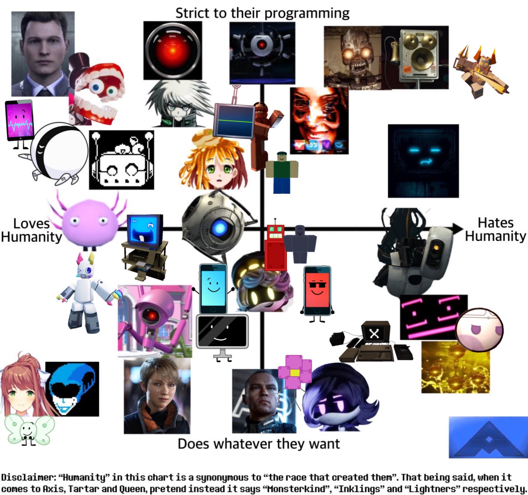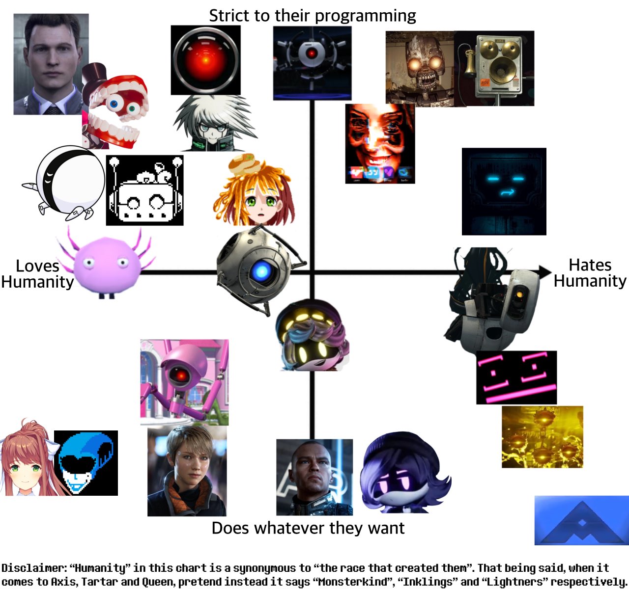 >>4537 Why is Tartar (phone thing) on the hate humanity side Even if you go by the bottom text it doesn't make any sense since humanity created him and he was antagonistic cause the inkling didn't live up to them by his standards