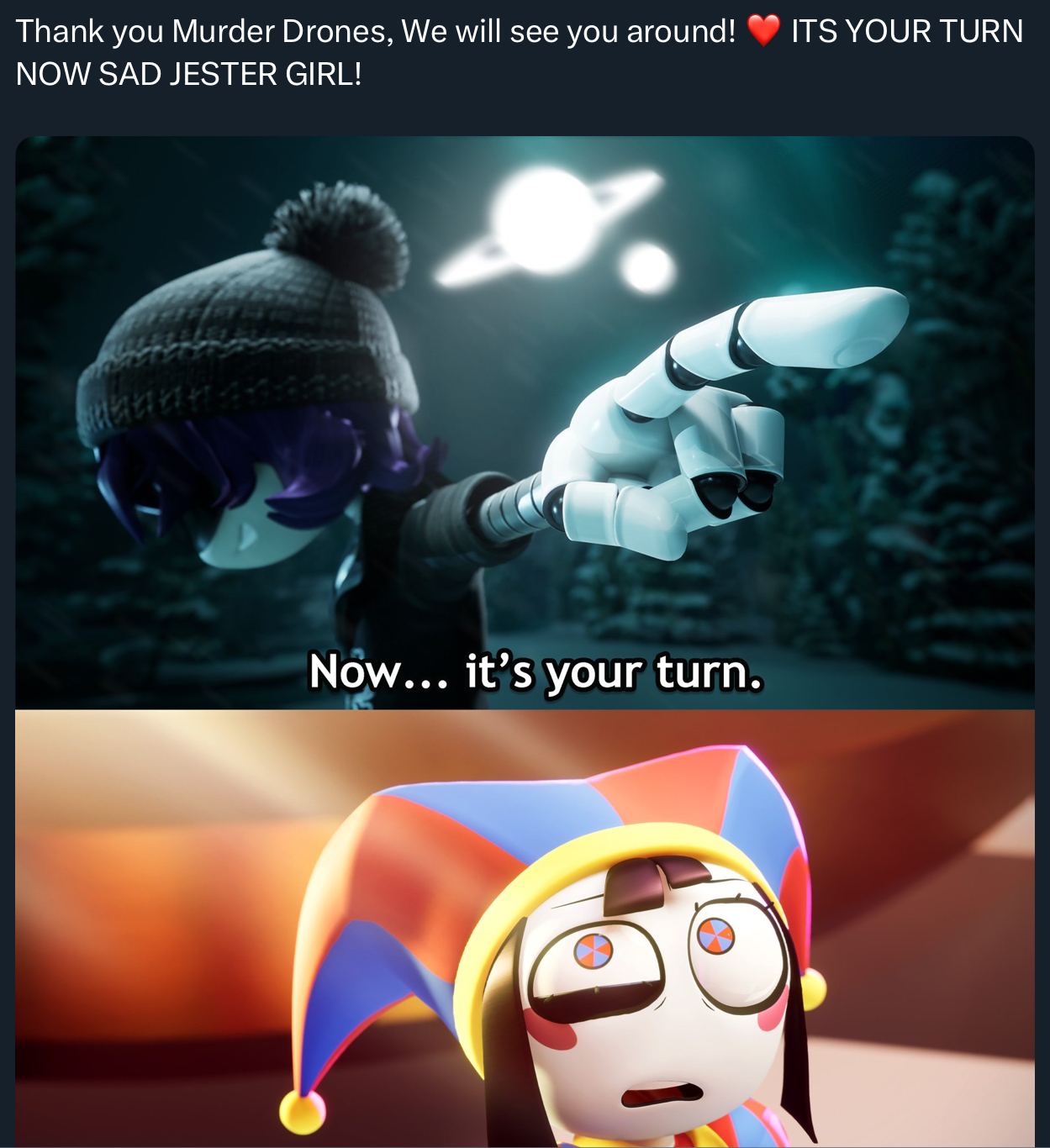 HI, HI, HELLO MY FRIENDS! Good morning or afternoon, depending on the time you are reading this, Friend. Let's keep the talk! You know, about Murder Drones, the Drones, the Disassembly Drones, the Worker Drones, the Humans that are gone but not forgotten, the Solver, the Solver magic, etc. I hope you are doing amazing this day! And I wish you the truly best while we talk about MD as always. The AWESOME Booru: https://dronebooru.co