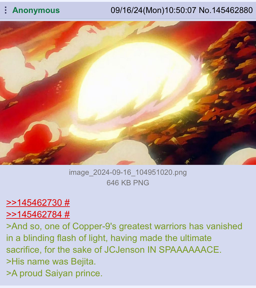 >>41616 To be honest we should have seen the L coming. Bejita made the ultimate sacrifice for us, and we all know how well that worked out the first time around with Buu.