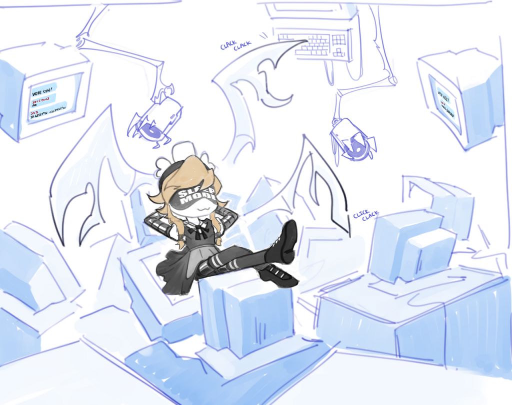 Here’s a cute. >Intoner is a brat, that much is true. Most Sentinels find it a little irritating but not enough to completely sour everything. >But she still feels emotions. All of them. Like love, rage, sadness, and fear. >She’s had a nightmare more than once actually. Some Sentinels get them. She woke up in the middle of the night and was too scared to even get up. She even started crying a little bit. >When she finally found the remote courage to stand upright, she managed to make it to the couch before curling up in a fetal position. >Eveline and Harper were the first to come to her, as if awoken by her distress. And what did they do, when they saw her shaking like a leaf and curled up in a ball? >They both carried her to a bed and decided to sleep next to her, embracing her to make her feel safe >Intoner may be a brat, but she’s OUR brat.