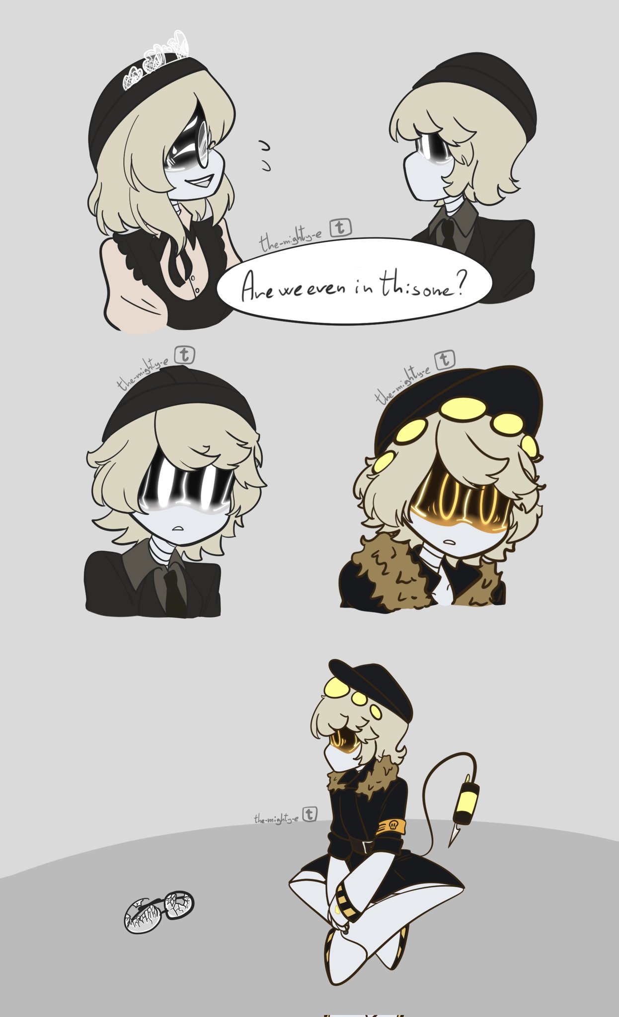 Alice is unironically peak 10/10 perfection, idk how they did it, likely didn't even realize the extent of all they created back then but it's so good it is unreal. Imagine, for one, she survives the Sentinels, which killed every single othrrr sibject that didn't escape (there were other escapees besides Yori and Neva- the one who is dead in 4, who is it?), figured out how to use the doirs to utilize Sentinels, either found Beau after that or smh got him through the core collapse already and then had years alone with dozens of dead WDs around and only mute Beau and the Sentinels (who where not even usefull most the time)questionable company. I can't tell when the first DD squad arrived down in the labs, but I feel as if it happened after more than a decade (no reason really), so, inspite of all zhe labeling of her going insane, she was still able to figure out the threat posed by DD cores (there is much more ti that point but I do noz have the time now) (maybe one escaped even? No Wdrone torso in Alice's room shows signs of core removal- inspite of part collectionikeky well underway at that piint in time (antlers were 50/50 already made by the time the first DDs came)), captured them fast enough to prevent any pedes and found a way to disable them. Actually, even now knowing that Alice doesn't have the Solver in the traditional sense(we knew already but the dazasheet made it official), I think she may still have some knowledge of it based on active CFL era and so on. Anyways, she is very, very interesting in nature, has imo the best lore, is very important, achieved way more than could have been expected given circumstances, looks great, has a nice voice, is a good person imo and has good taste (behaviour-/lookswise), there will be no character in MD or anything to top that ever