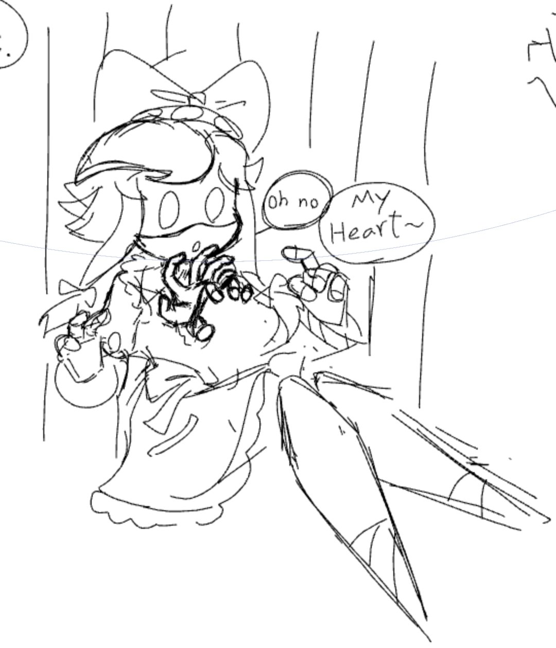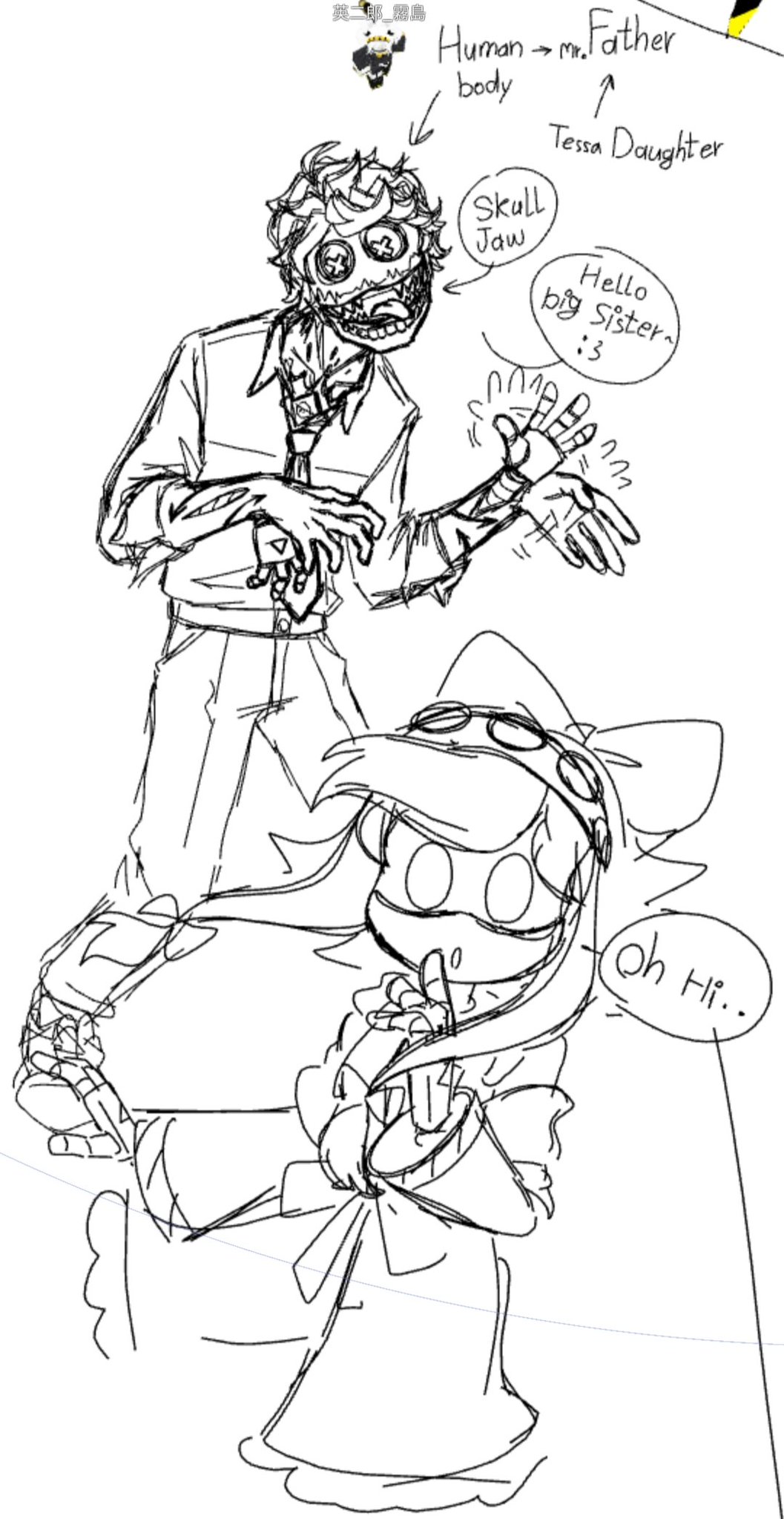 >>49624 (edited for typo) To sort of expand on this set of silly doodles, as worker drones, H and L were good friends and L does take the initiative to mess around with him. Harmless pranks. But as they've been re-made into DDs, a part of this persists in DD L's current self though how she pranks him now is a bit more adapted to how durable they are. She knows just enough they're strong and they regenerate (though she doesn't think about the hows or whys) and so her pranks kind of adjust to that level. H wouldn't admit it but even if her pranks get a little violent, he feels like having a part of his friend still persisting in their new ill-fated forms is something to be grateful for, as he didn't entirely lose L in the process. He hasn't realized yet that B and L's memories are slowly returning. The camping post elaborated on them a little. >>22480 >>49628 He was in the bottom one. I just wanted to draw him break through the upper drawer for a dramatic effect lol