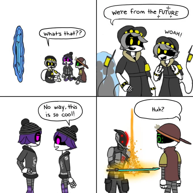 >>50094 >>50088 >Digital Circus season 1 ends >They managed to escape from the shitty gmod vr simulation but it ends on a cliff-hanger and they don't show anything after the escape >Murder Drones season 2 happens >In the first episode Uzi, N and V find a bunch of schizo drones inside a building that used to be a game developers office >Uzi asks one of the drones : "Who are you?" >The weird drone with a jester hat responds >"I... AM Pomni"