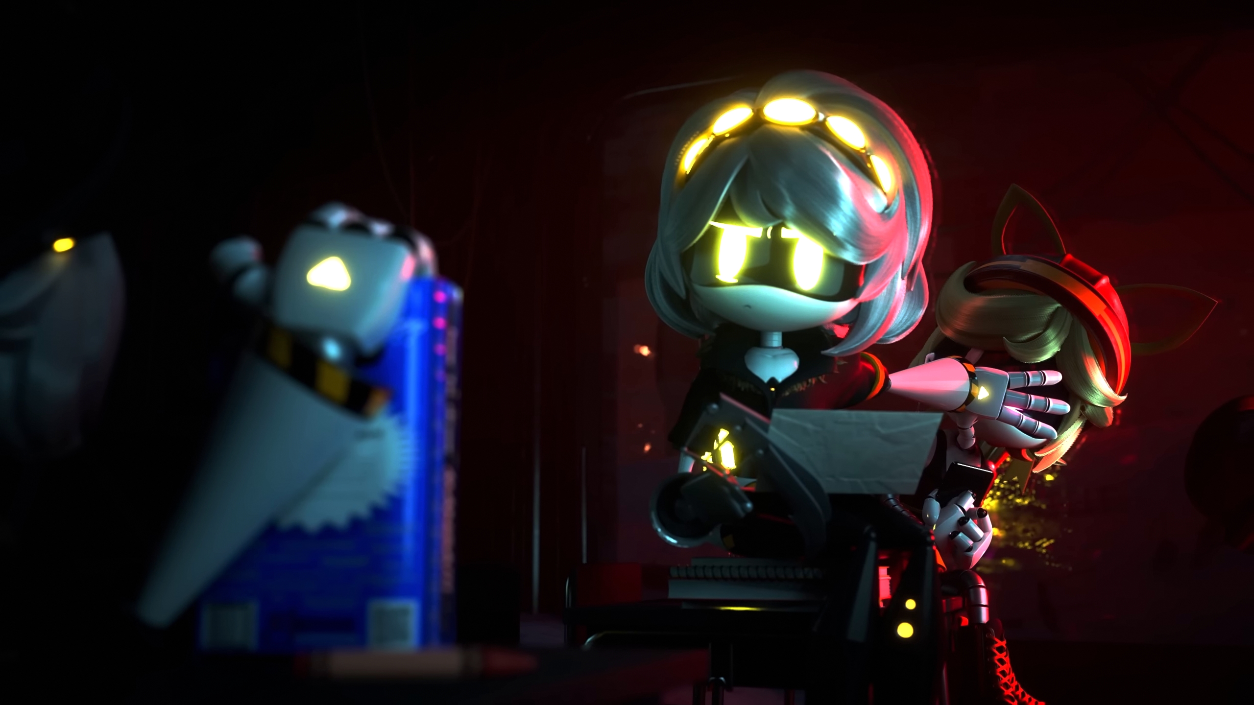 >"See you tomorrow, bestie." Lizzy bent down to kiss Doll's dead cheek again before, as she had done at the start of every weekday evening for several weeks now, putting a shroud over her seated body. After one last sweep around the empty home to make sure there were no garbage bugs, she replaced the burned-down candle at the table and lit its successor. >Looking back one more time before she left, Lizzy dimmed the lights all the way down and went out the door of what was once owned by Constantine and Yeva Berlioz. She locked the door behind her. >Halfway back to her place, Lizzy runs into her other bestie leaning against a wall, as cool girls often do. >"You keep staying at that crapshack a really long time, Lizzy," V growled. "What gives? What happened to us?" >For once, Lizzy had nothing biting to say. "I'll explain it when we get back home. I don't want to talk about it in the hall." >"For your sake, it better be good. Else I'm gonna start wondering if maybe Rachel is on to sometbing about you." There was so very, very little mirth in V's smirk. >"Don't even joke about that, V." >"Who said I was joking?" ... >Mr. and Mrs. Hughes, as usual, were completely checked out: Lizzy's dad was alternately grading papers and trying-and failing-to summon the energy to consider suicide, and Lizzy's stepmom was spying on the neighbors. >Lizzy and her robo-vampire roommate could discuss their issues as freely as they wanted as long as it was in their room. >"So what's the deal, Lizzy?" V said as she settled on top of Lizzy's bed with her. "When you started bringing Doll's carcass to school, I didn't mind. This is just gonna be a phase, I said, one of these days you're gonna forget it in class at the day's end or give it to me at lunch or something and that'll be that." >A shadow neither of the two were aware of started getting red pixels surrounding it. >"But then you started staying at that place all afternoon. What are you doing there? Is it really all schoolwork there? Somewhere where we can't cooperate? We can't be keeping secrets from each other, Lizzy. I've been completely open with you and I hope you can do the same for me." >Lizzy groaned as she considered how she was going to say what she wanted to say. "First off, I'm warning you, I'm gonna get into some really personal territory for both of us." She sighed as she considered her words some more. "... Doll and I were each other's oldest friends. We'd known each other since we were toddlers. I had never, once, known a time without her.... and now she's gone." >The red pixels left the unseen shadow. It leaned towards Lizzy. >"This isn't about how Doll was a better kisser than you." V glowered briefly, but slowly eased up when she saw the bags starting to form under Lizzy's eyes. "I love you, but every day, ever since the evening Uzi and N brought the body back up, I've asked myself if I made the right choice warning you. Betraying my best friend, someone I'd known all my life, for someone who murdered her parents." Lizzy's voice started to choke up. "Did I really do that just because you were hotter than her? Was I just saying the first thing I could think of, or was that how I really felt?! Is Doll dead because I got horny for you?!" Lizzy buried her face in her hands and cried. >V hesitantly reached out to put her arm around Lizzy, only to get her arm weakly slapped away. "You know what I do in Doll's house that I'm there so long?! I put out traps for the garbage bugs! I clean up their nests! I look for holes they get in through so I can plug them up! I do more housework in a week than both my parents combined do in a month! Because I don't want the bugs eating her body like they ate her parents'!" Tears were pouring on Lizzy's visor. "Have you ever lost someone you'd known your whole life?! Who'd been there whenever you needed them?! Or were you just built as someone who tried to get through life pushing everyone away until you couldn't take it anymore and reached out to me?!" >The shadow reached out towards Lizzy's, seemingly embracing it. >"I..." V was torn between feeling hurt and betrayed and like rethinking her and Lizzy's entire relationship and feeling... something else. She wasn't sure what something else was, but it was something else. >"Why couldn't it have been Rachel... then both of you would be alive..." an exhausted Lizzy sobbed.