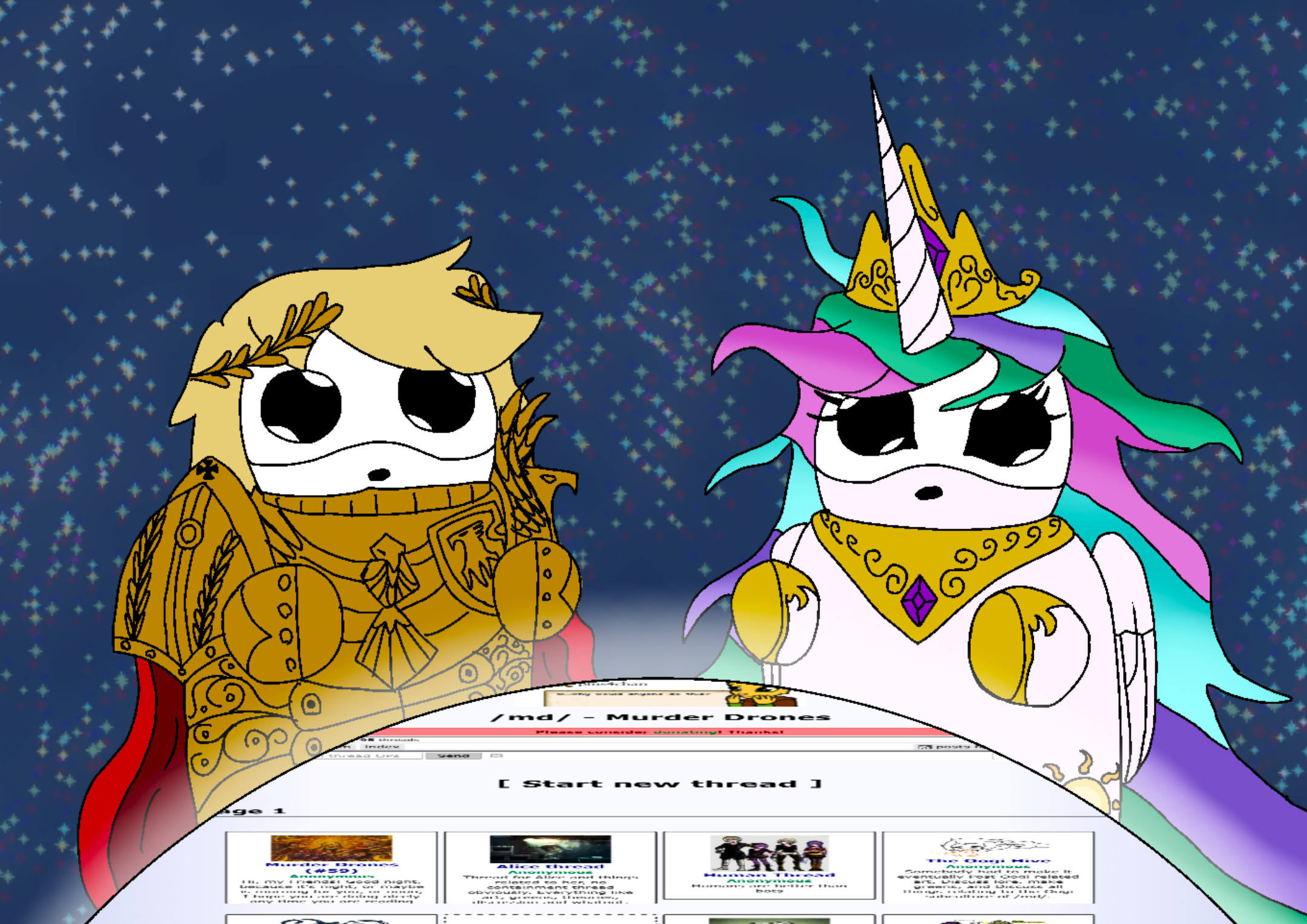 >>64641 >Ponder appears and pulls the MD cast into a revised PuppetGAME >N, V and Solver-God Uzi have to contend with others with odd powers like Door Guy, Subject 104, Kali, Sketch, Subject 0111, Mari, Sarah Duffy, Yellow Halogen, and many more >will they be able to set aside their differences and defeat Ponder or will the extradimensional robot bunny thing continue his uncontested rule over the game?