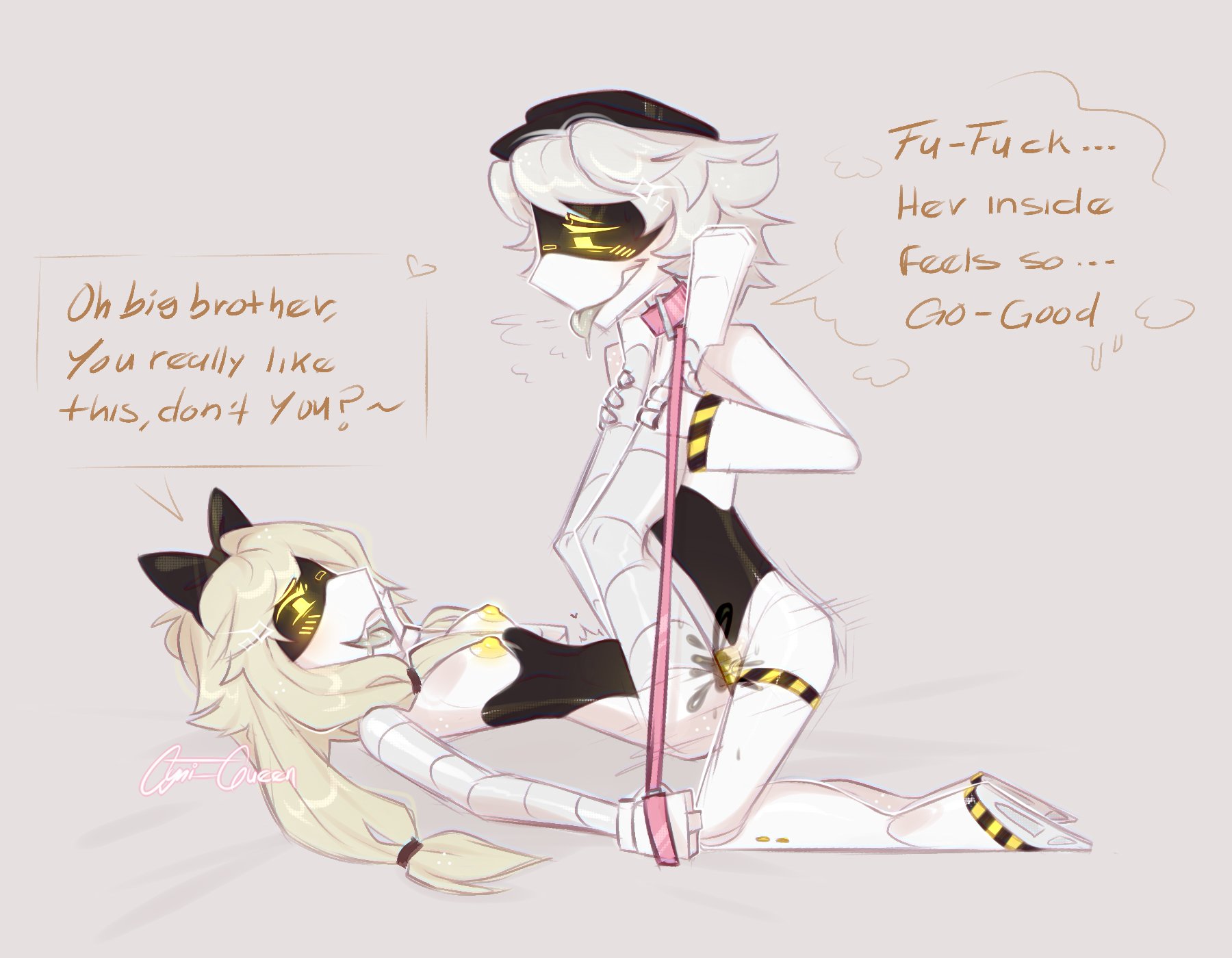 >uzi just finished giving N a blowjob >N: Wo, Zi, that was amazing. >U: Well I guess it wasn't that bad for me, too. >C: Jesus Robo Christ, it looks like a waterfall between her legs >U: Aaghh! Shut up, Cyn! >C: I didn't even know drones could store that much lubricant.
