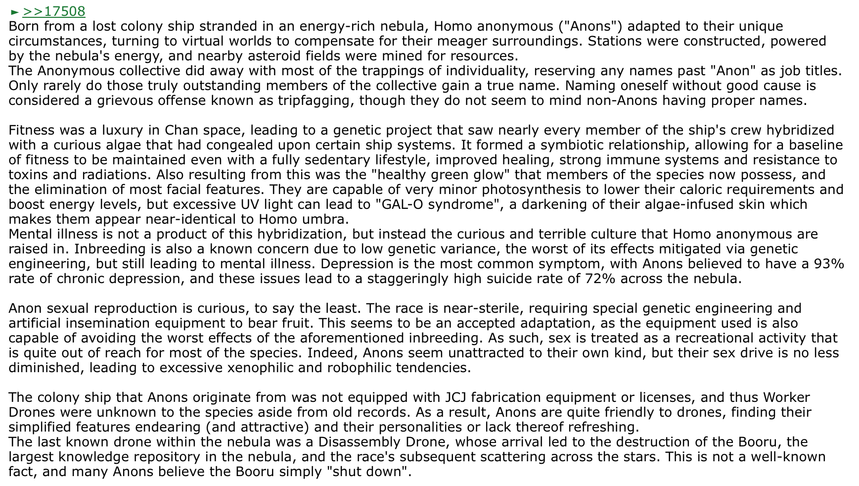 >>69943 It seems to place a ceiling on what they can achieve if they're not, especially given the Copper 9 drones' heavy reliance upon tropey human media for bootstrapping their consciousness.