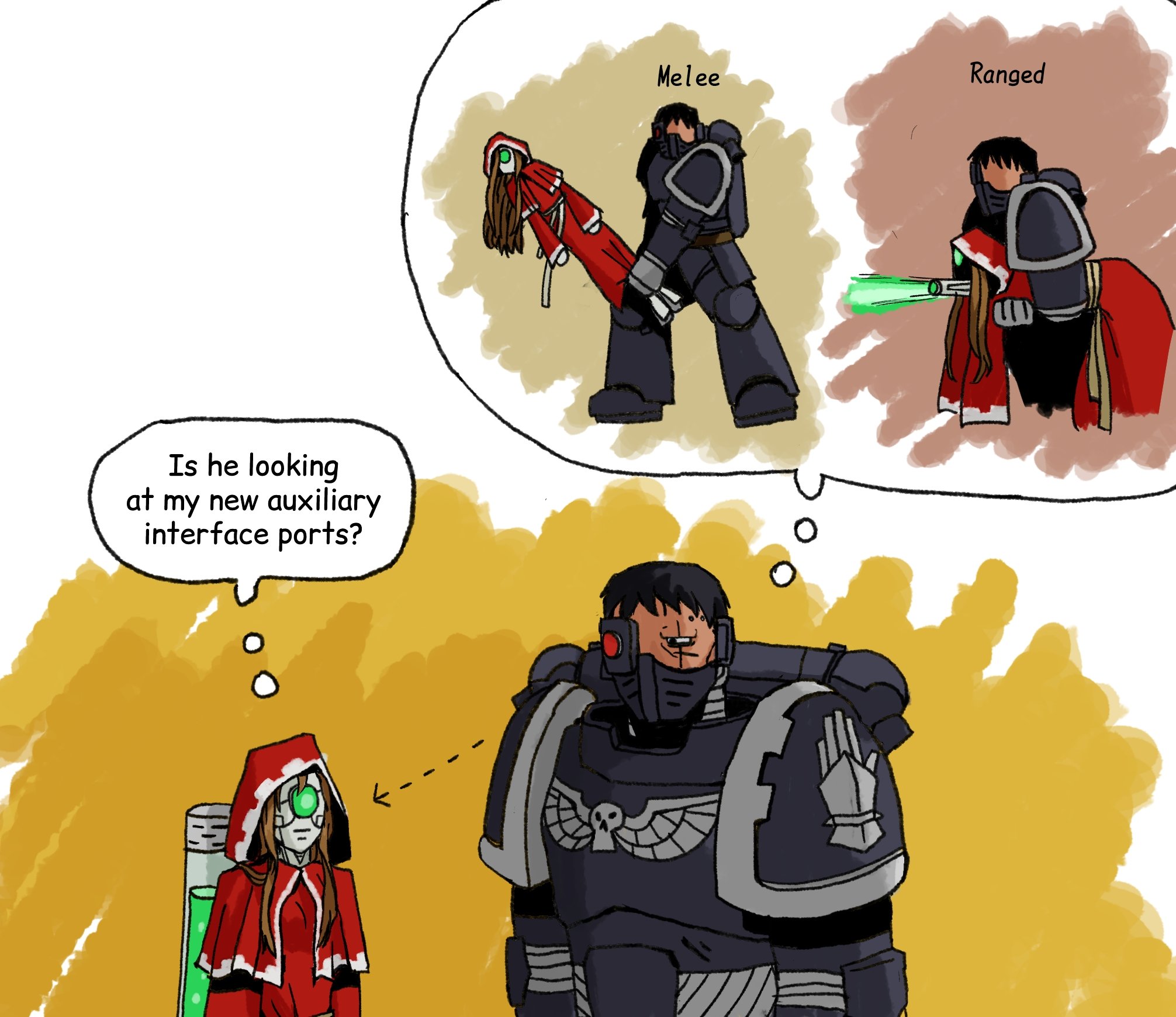 >>74187 >You sign up for the Sentinel Buddy program >You are assigned a Sentinel Drone to be the friend of and help it destress between missions >Your Buddy arrives >She is abnormally tall >She looks down at you >"You look like a child. I hate children."