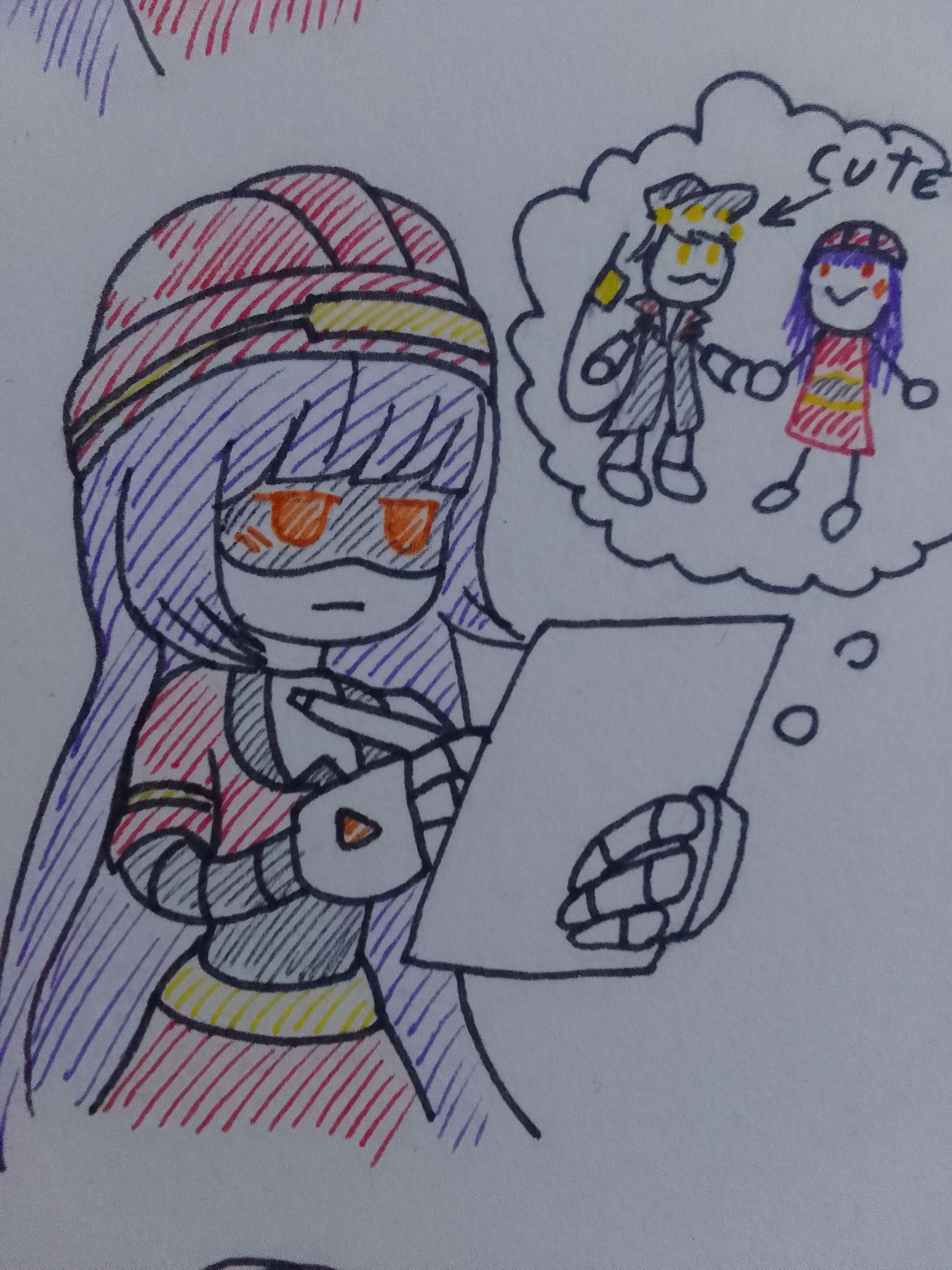 Quick Alice, had that idea because of that cute scene were Alice nestled 029's neck thingy into her antlers and cause of a shiny black feather with a blueish hue I found today and put on my bikes handlebars, it looks somewhat ungood but I don't have the time to complete the drawing noe anymore, it will be more tomorroe I have done more than just this one this eek but still, everything too vague zo posz yet except this