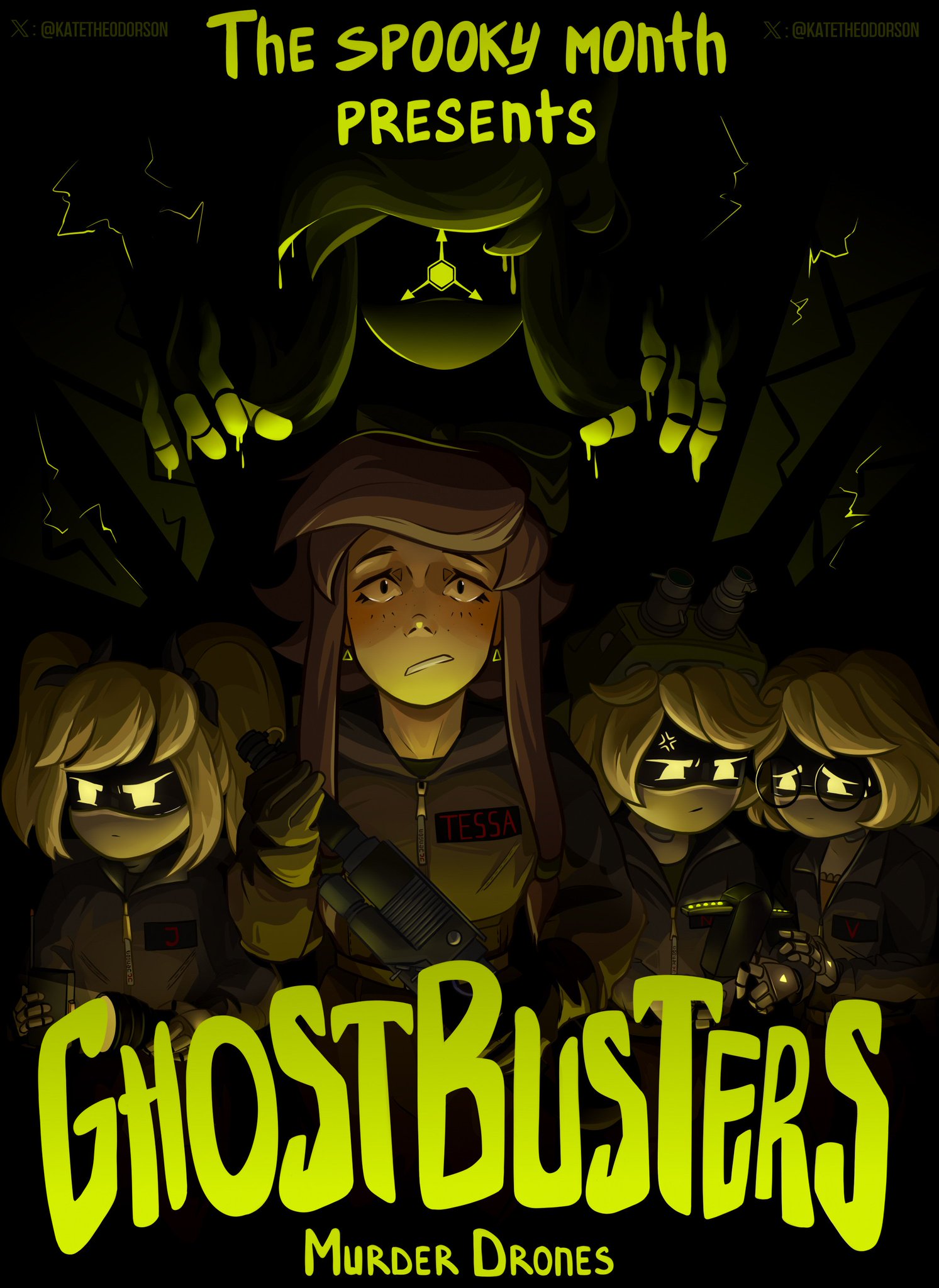 origin: >originally a mindless rank-and-file DD, she attacked a human colony during an outpost-wide Halloween party. >she was tearing through the terrified colonists, and had cornered a technician in the rec room. >the technician, in a last ditch effort, managed to jam a data drive into the back of her head >the drive contained documentation on Halloween and an archive of every horror movie, Halloween special, spooky song, and stock horror sound effect ever produced– a product of the data preservation efforts made before the fall of earth >this overloaded Lucy's brain, and she was left there in a stunned state, surrounded by spooky costumes and decorations while the colonists evacuated >she sat dormant for years, programming corrupting further and further as her brain automatically played through every file on that drive >when the last film concluded, she began to stir >the mindless killing machine had died as she slept– the drone that now awoke from her long slumber was a different beast. >a spookier one. >pulling a vampire cape from the rack, she sets out from the empty base >the hard-coded "Prime Directive: Exterminate" is overwritten >in its place an endless, jumbled mess: "Prime Directive: HALLOWEEN spook slash eat candy give candy scare be scary costumes TRICK OR TREAT jack-o'-lanterns candy apples razor blades monster movie marathon ghosts..."