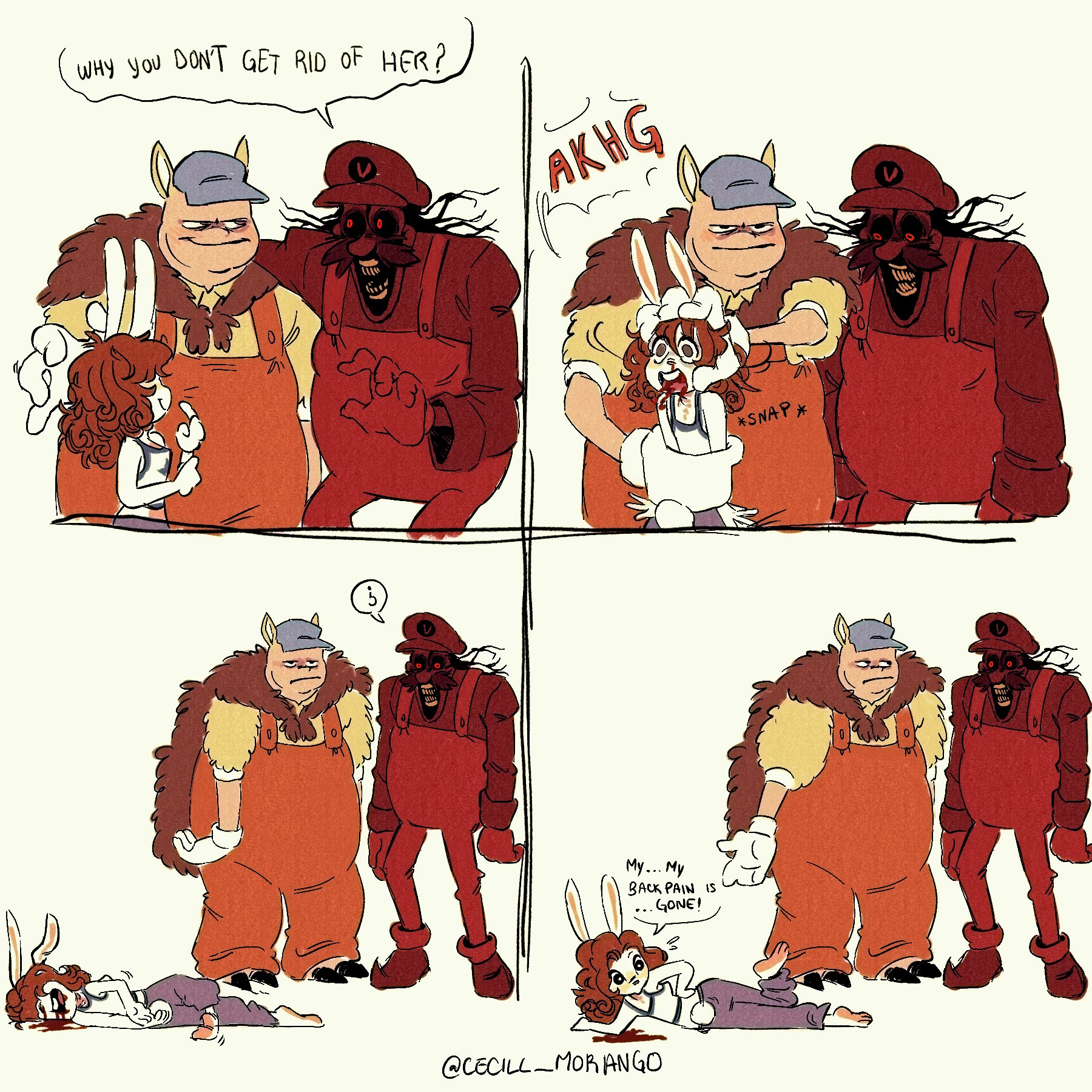 Also for >>77290, as the one who originally made up the whole generic Children Ever After scenario in >>77282 I mostly just set Beauregard up as a Straight Man to Tessa’s incredibly shit attitude at the time. I suppose he was supportive and patient enough to get Tessa to open up and stuff but since I mostly write disjointed gags with a vague sense of continuity I admittedly don’t have a full story and psychological profile . While I still have him as the more level-headed one in the other comic, giving him some quirks like >>77290 and >>77292 suggested could make the whole thing more balanced.