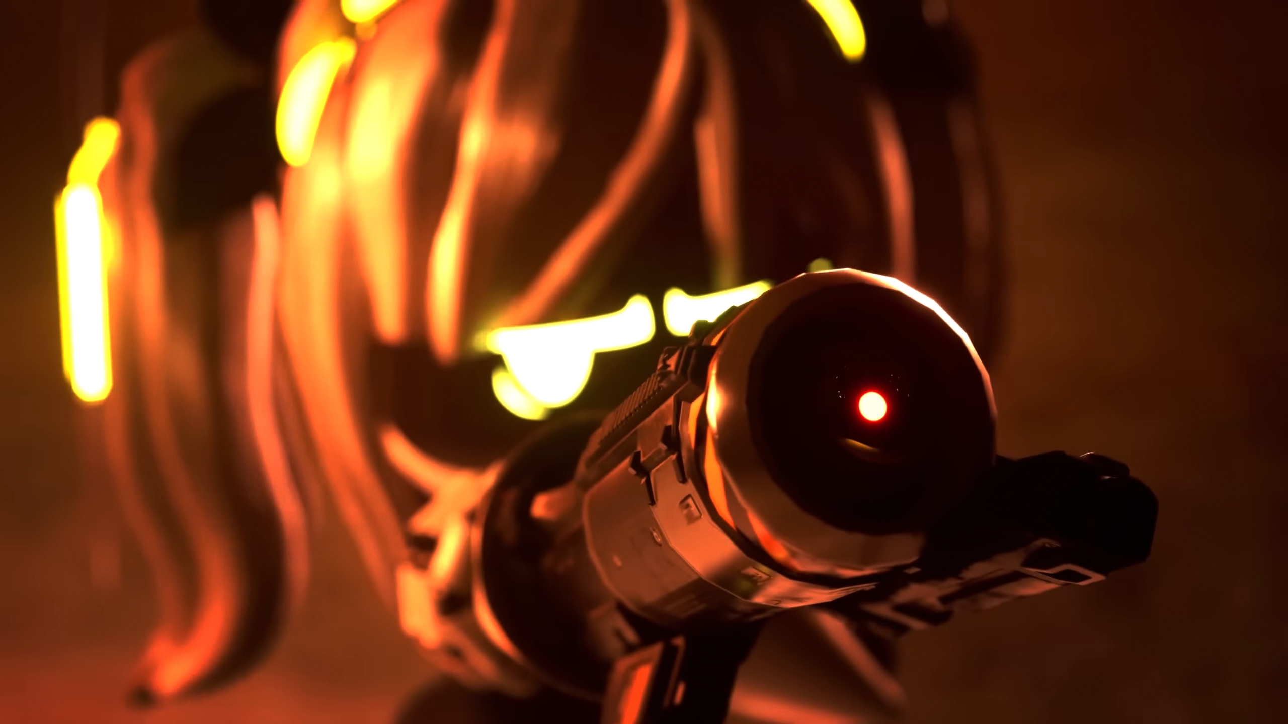 >J heard her death knell. >Mechanical activation. >She was staring in the wrong direction. >fearandtrembling.exe ran. >A solitary drop of digitized sweat ran down her visor. >She turned and saw detected a flash of green light in the darkness. >'Just in time', the same way she liked her logistics. >Though it was a beam of energy, the fog slowed it down enough that J was able to dodge her head. >The left tail of her hair was blown off, but that was ceremonial anyway. >It would grow back.