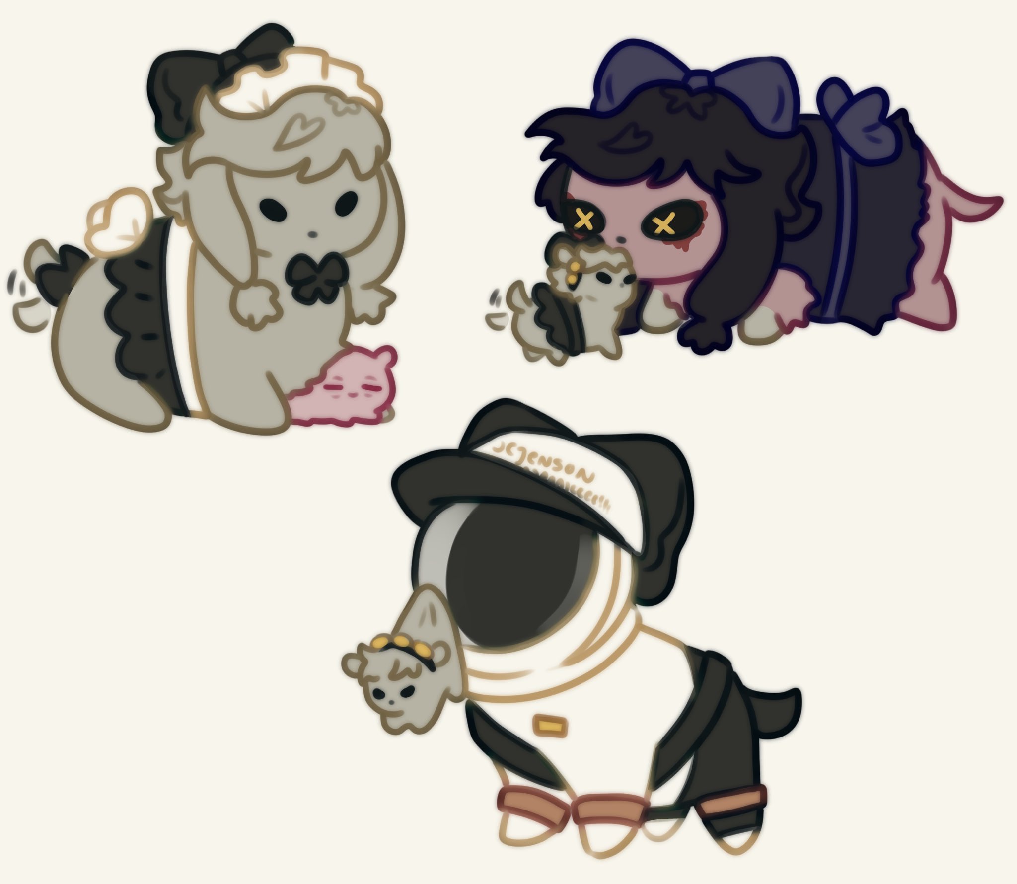 [OC] >SD-E She dresses up in a terror inducing flesh costume! Not really though since her boss didn't approve of using actual flesh, instead she wears a massive custom made out of cotton and fabric to replicate what she'd look like with human skin. It looks kinda like a giant plush version of E though >Mascot-E Doesn't need to dress up, but she confuses E for being a body double >Beretta Due to an accident leaving her hair stained white, she goes as Kreia instead of Mara Jade like she wanted >Akita Not questioning the random dimensional merge, she still continues her regular Halloween dressed as Satina >Colt Unlike Akita he is extremely worried about the random dimensional merge, he paranoidly continues his Halloween dressed as a cowboy >Hope She's unsure why everyone can suddenly see her, but making the most of it she grabs one of Beretta's old bedsheets and pretends to be a normal spooky ghost >Negev Surprisingly she's allowed out for this one day, maybe Uzi threatened the Administrator, who knows? She wears a completely non-obscure and culturally relevant costume of Dr. Warren Chapin from the hit film The Tingler.....because Hannibal Lector was too obvious >Jane She's dressed in a silly and extremely shitty dragon costume....why is she crying? >John He is a normal human man....for Halloween. Do not question why is he trembling >Eye He's dressed as John....he wasn't aware it was Halloween >Harper Due to her co-workers claiming she has an oddly motherly and her daughter suggesting it...she is dressed as Toriel. No she does not know who Toriel is, please stop coming up to her house and talking about how much you love Undertale, her patience is wearing thin >JC As a result of one of his company's many morally questionable expirements, the dimensions have merged, thankfully only temporarily as JC cannot stand this level of unproductiveness. However, unknownst to anyone and maybe himself he still feels a shred of joy for the holiday, convincing himself that it's just a ploy to gather more information, he dresses up in a crappy alien costume and walks around the Outpost collecting candy for "research" >Stone He dresses up as a Mandalorian, he figured it just kinda made sense. Beretta compliments his costume >Buckety She's used as a candy bucket, this angers her because she definitely did get a body again, but ALAS! The cruel asshole Gods decided that was funnier being just a head >T.A.M.M.F.K Dressed as Bruce Willis from Die Hard. Do not question why his appearance keeps changing and do not ask where he has been for the past several months >Toby Dressed as the Engineer from tf2, he thought it would be funny, but now he's being pestered by strangely masochistic Drone that want him to hit them with his wrench >Aoi & Haruka Haruka wears a Reimu costume whilst Aoi wears a Yuyuko Saigyouji costume....do not question how Aoi is wearing a costume >Bugretta??? Using her Oogis engineering skills, this Bugretta has managed to craft herself a mech-suit that happens to resemble General Grievous just for this occasion >SD-T Dressed as Yuno Gasai, duh