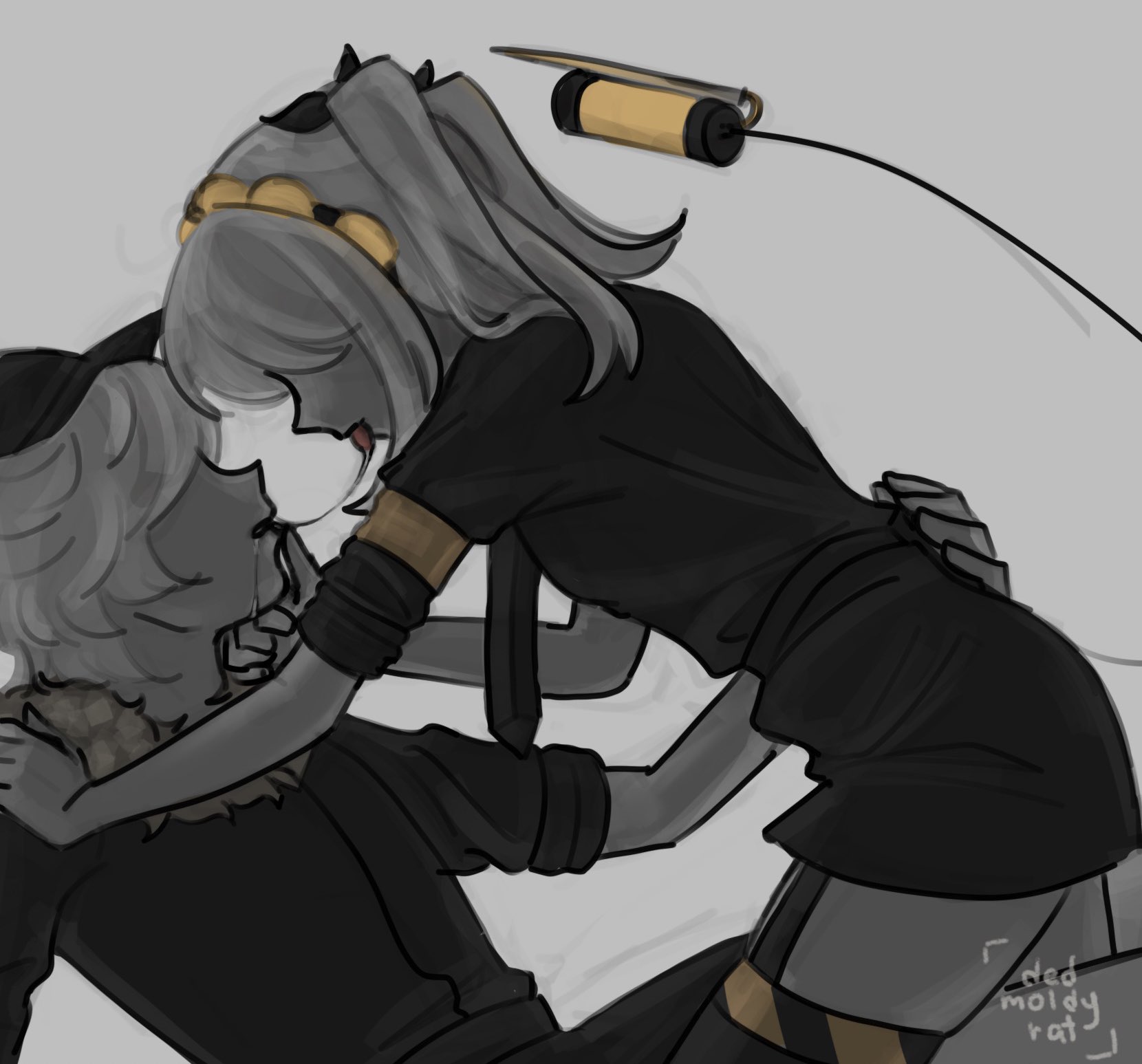 I've recently had an idea for a stupid angst story. Idk, imagine this Solver War scenario. A human soldier facing off against a DD girl. For a brief moment, they both pause. They recognize each other. She was his personal Worker Drone, and more importantly, his best friend. For a moment, he stood still, aiming his gun at her but not firing. Likewise, she was aiming her SMG as well, but couldn't bring herself to pull the trigger. Both stood still, momentarily ignoring the chaos around them, all they could focus on was their friend turned foe. Yet, deep down, neither wanted this.