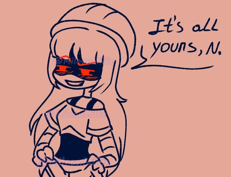 king of the hill type running joke where N gave birth to a purple-eyed, purple-haired, angsty gremlin drone child and izz is always like “that’s my boy right there”