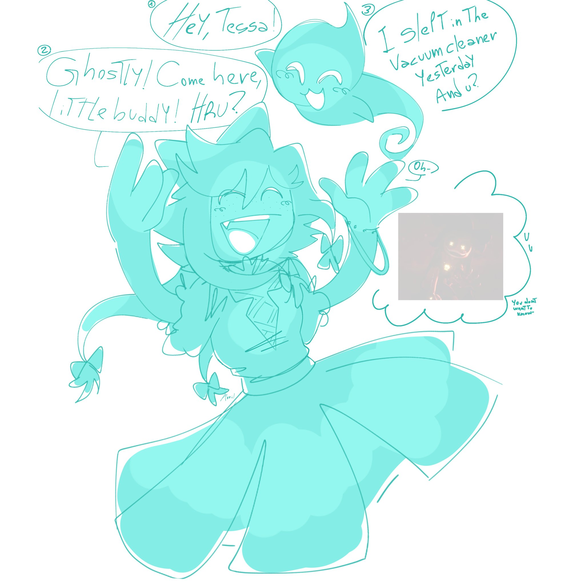 Out of curiosity, How many variants of Tessa are there actually? As far as I know there is: cannon Tessa (the shadow one), space adventurer/engineer Tessa (what people thought she would be before episode 7), Suit Tessa (literally just the empty space suit), Solver Tessa (kinda looks like a praying mantis), Cynwalker (sorta), skeleton Tessa (also SkeleTessa), bitter adult Tessa (from the Solverless timeline greens), and giant Tessa. Did I miss any?