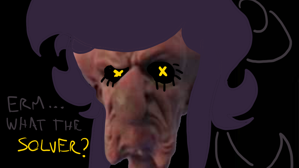 The Solverpede shit always confused me. There's no possible way that Uzi could be physically be a Solverpede in her plane of reality at the end, the same could be said for Cyn during the gala for one simple reason. HAVE YOU FUCKING SEEN HOW BIG SOLVERPEDE'S ARE? THERE'S LITERALLY NO WAY UZI IS ABLE TO FIT IN THAT CLASS ROOM AND THERE'S NO WAY CYN COULD FIT IN THE GALA. ALSO NOT TO MENTION SOMEONE WOULD TRIP OVER THEIR LONG ASS BODY IF IT WAS JUST INVISIBLE