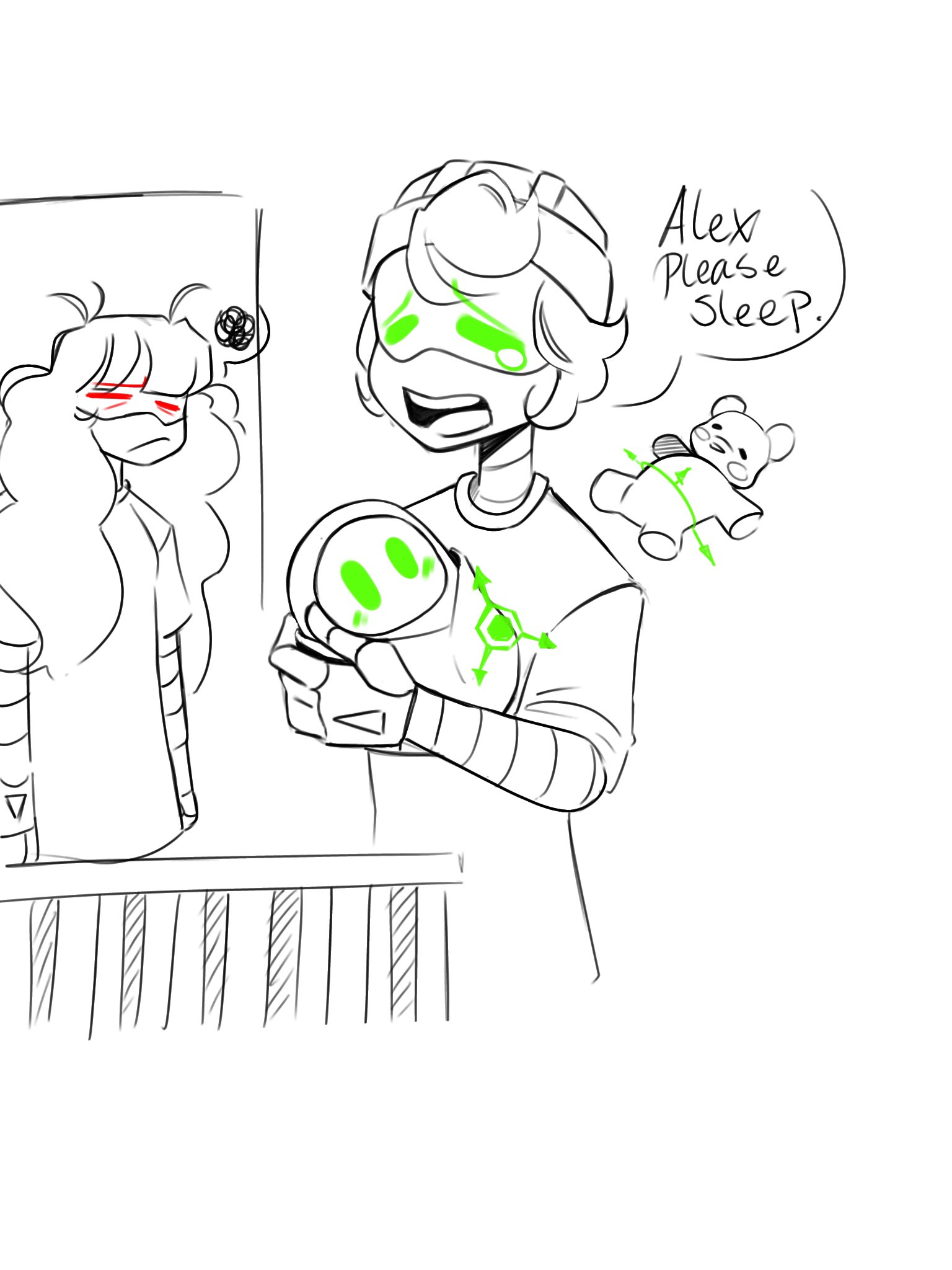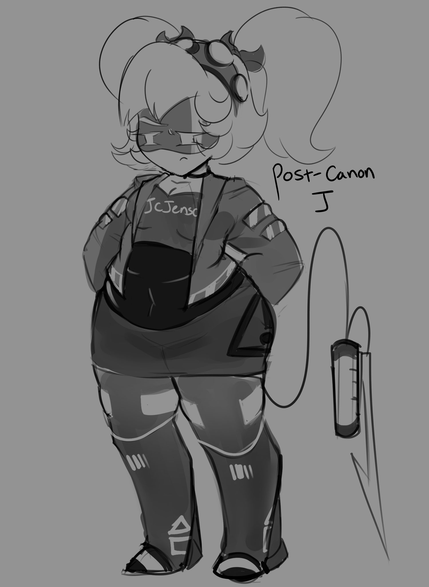 >>85718 This was sometime after the thread had been bouncing around what Beretta was like as a character. I don't know if this is up to date with how she's usually written anymore but at the time she was supposed to be socially outcast and struggling with solver possession, having biological parts and being the kid of hero celebrities. I speculated that Marcy with the frozen and possibly still alive? MarcyAnon in tow could have made her way across Copper 9 from the far northern outpost where she was when the core collapse happened to interact with the post-canon characters. At that point she would have been one of the oldest drones on the planet, having been brought online and later imported to Copper 9 well before the events of the prologue. I thought that maybe Beretta could confide in her as a fellow outsider who never really fit in with the other Drones, who lived through the whole core collapse and had seen other worlds and had interesting experiences back when humans were around, etc. >>85723 The light inside is broken but she still functions. >>85724 I don't pay attention to thread trends much, I just doodled her 'cause writing new greentexts about her reminded me.