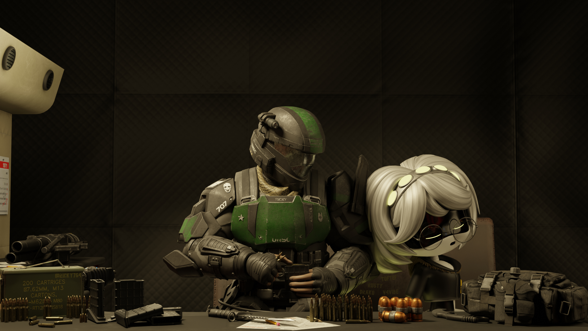 >>91646 just woke up. kinda have a headache but they're not mad at each other. they're good friends but they do argue occasionally and mess with each other. in this pic, my thought was L egging on H to just fucking kiss the captain but H refuses. she's trying her best to be kind of a wingman but she's a little too blunt. i mentioned before that as a worker drone back on earth, she loved reading and romance stories. that was worker drone L. being refashioned into a DD, the process leaves only small bits of her former personality intact, she's not the self-proclaimed 'romance expert' she was. i call them the dumbsquad for a reason