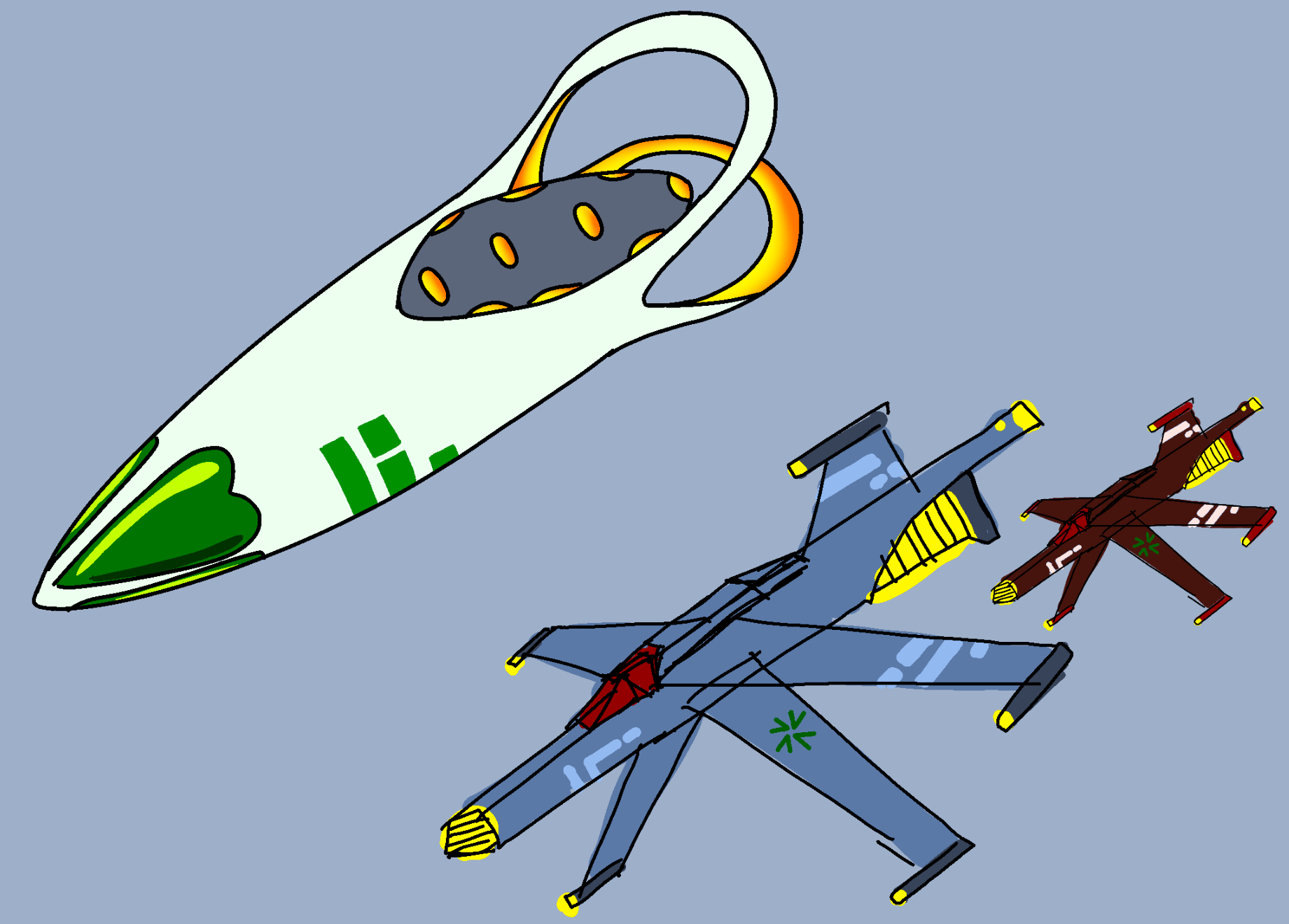 also again just like the other one I wasn’t even consciously aware of what an x-wing looks like when I drew this (although unlike the Orville ship which I’ve never seen, I’ve obviously seen an x-wing before so it was definitely subconsciously there) I think the main takeaway I’ve gotten from this is that every possible spaceship shape has already been thought of, and I find that very funny