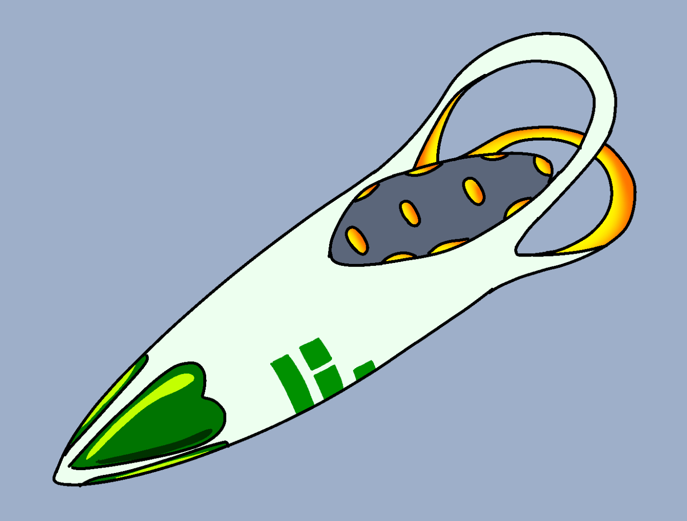 >>93414 (me) It’s largely based on this earlier drawing I did, I conceived of the one I just posted as a smaller equivalent to pic related, I joined the horns together into a fin and put another one on the bottom, I didn’t know someone already thought of that, it was genuinely parallel thinking