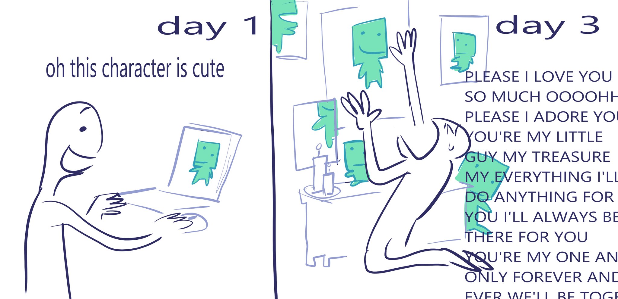 >>97587 >what porn drawn by him would be like I have the distinct feeling that Liam isn't capable of drawing lewds of his characters because he has never seen a woman's naked body before He just draws them with barbie/ken anatomy - totally blank chest and crotch - and goons to that