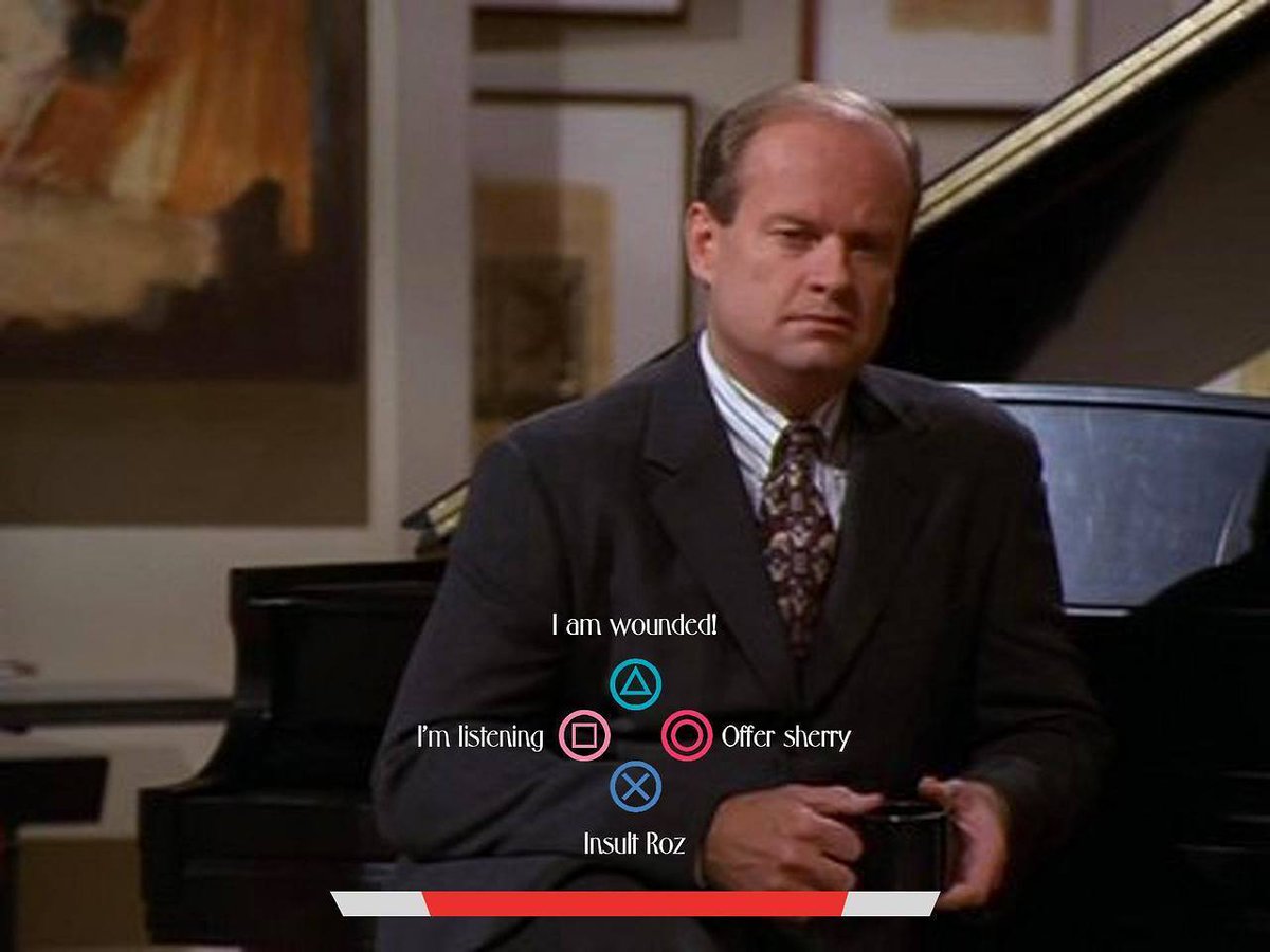 Looking at this thread again made me nostalgic for Frasier, so randomly googled and in the process found this.Why is this a thing?https://edward-la-barbera.itch.io/frasier-fantasy