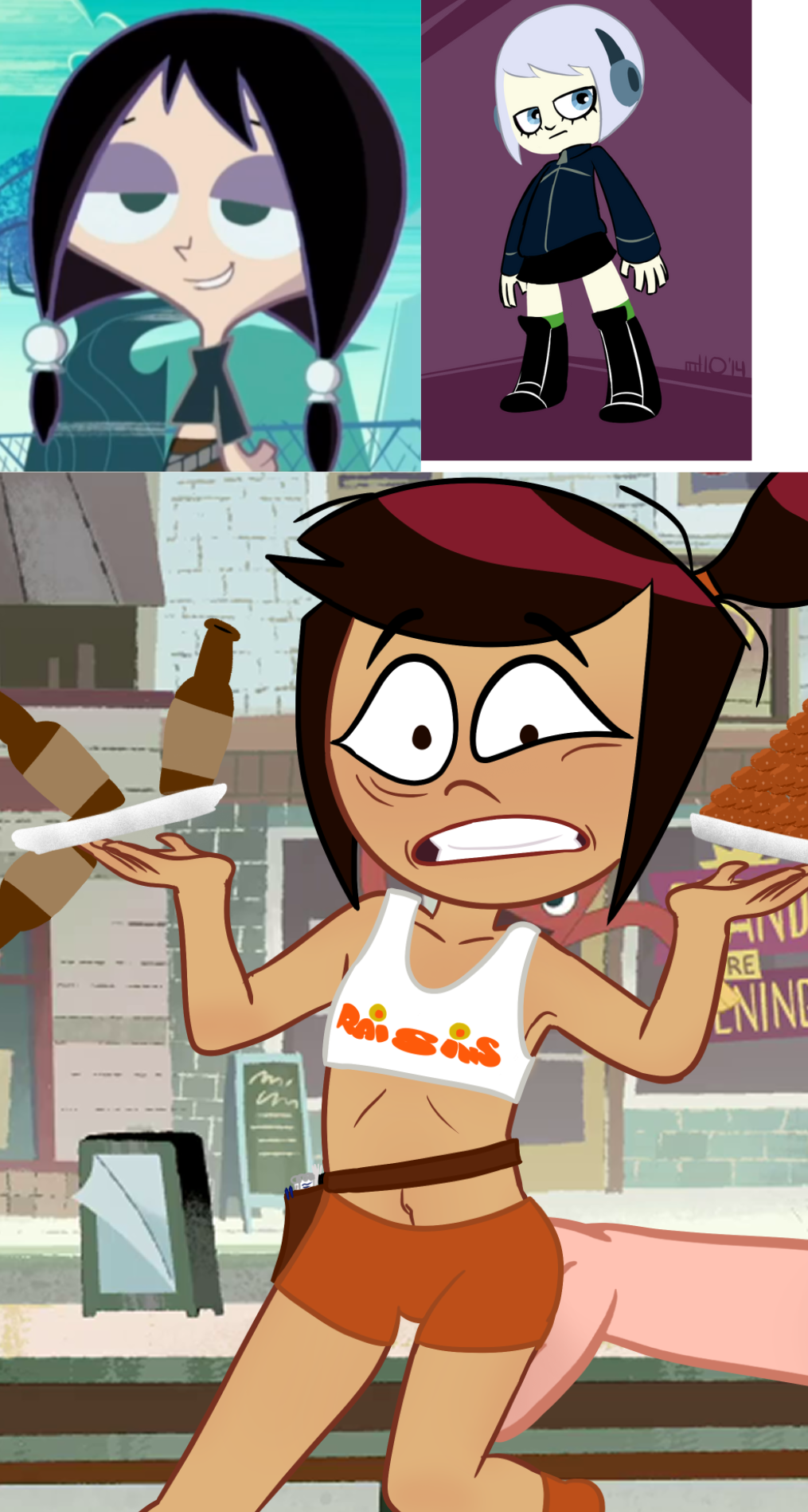 Requesting Manson from Matt's Monsters (or Zero from Invisible Network of Kids) Wearing Raisins Uniform like Molly Mcgee wearing Raisins Uniform and Doing a Leg Split Up.....
